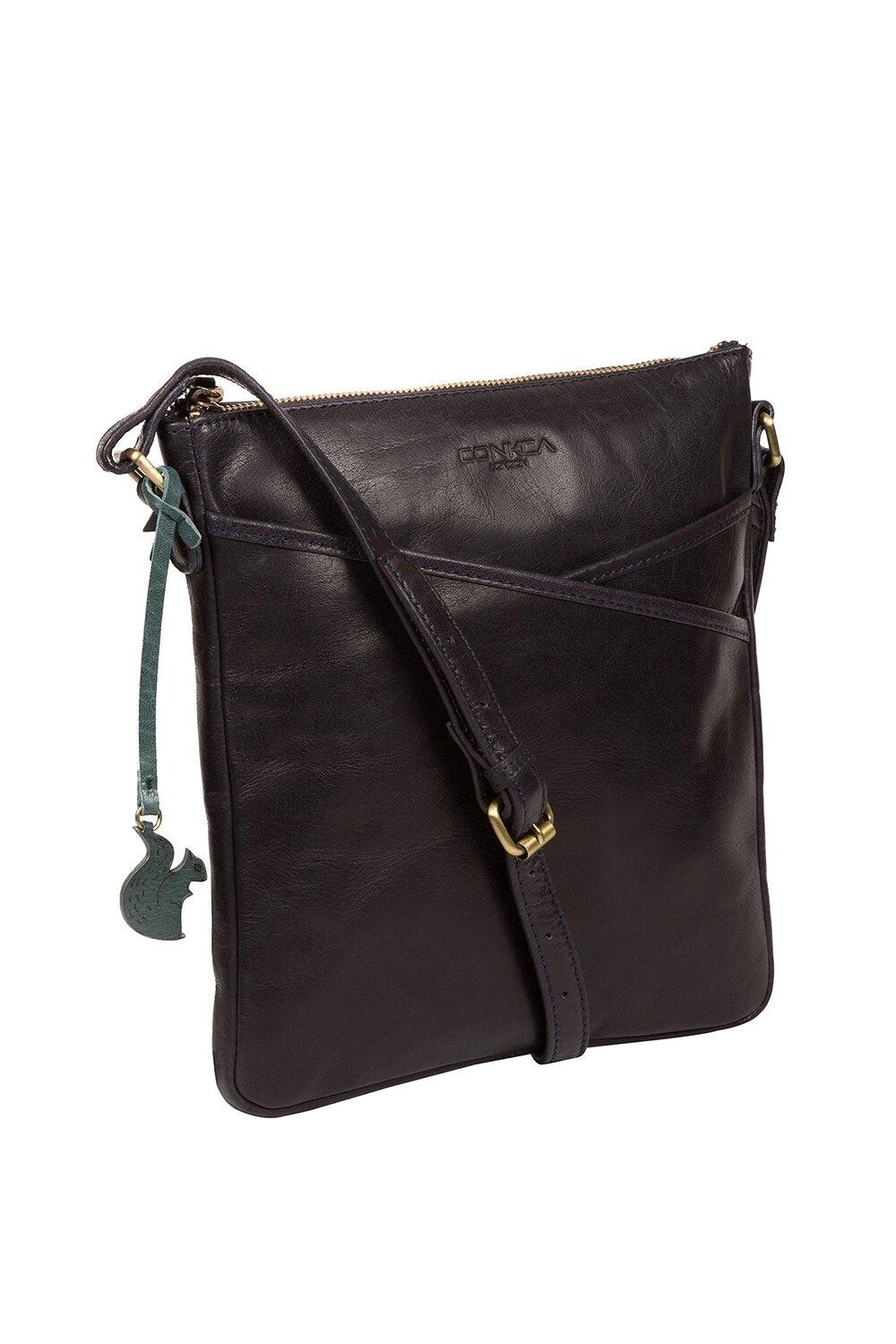 Сумка через плечо Avril от Conkca London изготовлена вручную из натуральной кожи с красивой текстурой. Два накладных кармана спереди и сзади сумки идеально подходят для хранения вещей в дороге. Верх на молнии скрывает центральное отделение, которое полностью на подкладке из необработанного 100% хлопка и имеет два кармана, которые помогут держать все необходимое в порядке. В комплект входит подходящий регулируемый кожаный ремешок, украшенный неповторимой подвеской Conkca London в виде белки и тисненым логотипом.