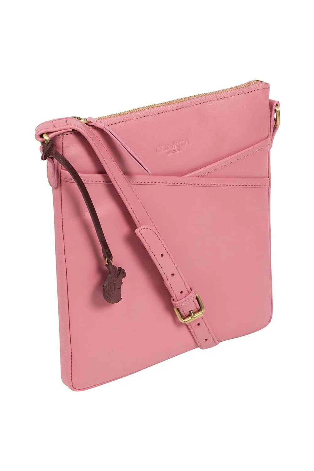 Сумка через плечо Avril от Conkca London изготовлена вручную из натуральной кожи с красивой текстурой. Два накладных кармана спереди и сзади сумки идеально подходят для хранения вещей в дороге. Верх на молнии скрывает центральное отделение, которое полностью на подкладке из необработанного 100% хлопка и имеет два кармана, которые помогут держать все необходимое в порядке. В комплект входит подходящий регулируемый кожаный ремешок, украшенный неповторимой подвеской Conkca London в виде белки и тисненым логотипом.