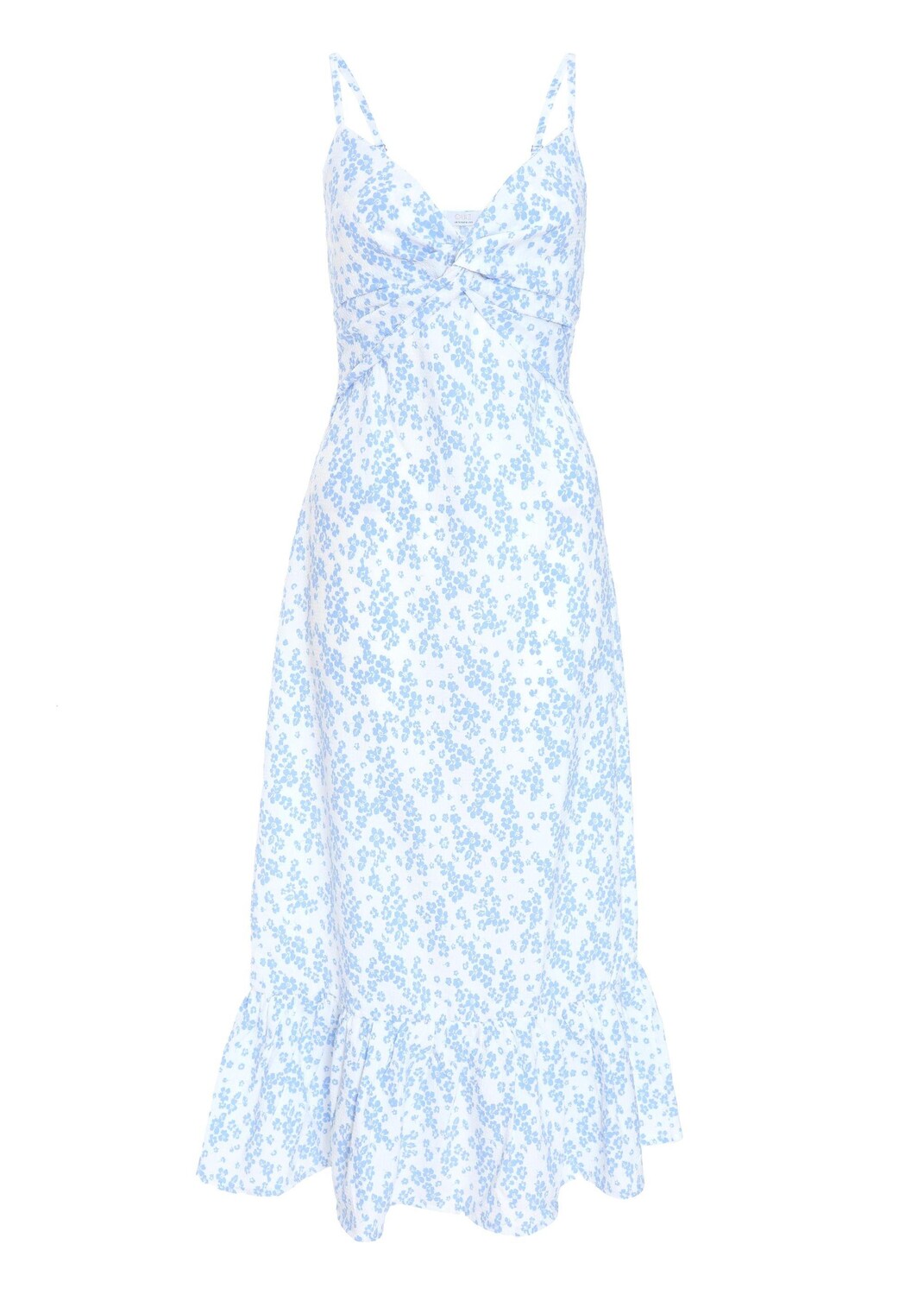 Платье миди с легким цветочным принтом и жатой тканой текстурой. Идеально подходит для летних прогулок и отдыха. Идеально подходит для создания воздушного и длинного летнего образа.