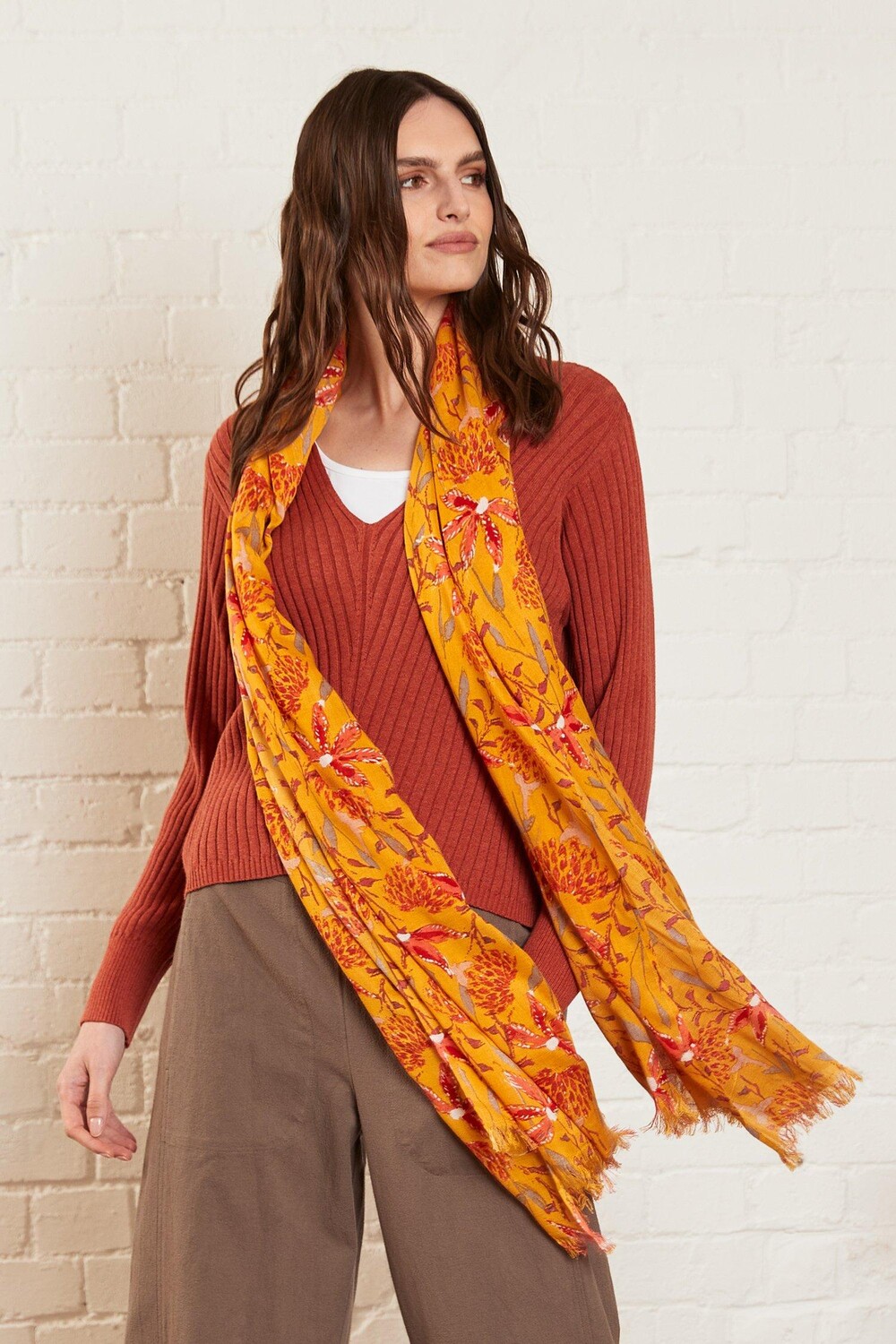 Изящный шарф с цветочным принтом треба, изготовленный из экологически чистой вискозной марли. Простой способ добавить цвета в ваш наряд. Выбирайте из наших светящихся и белых цветов.