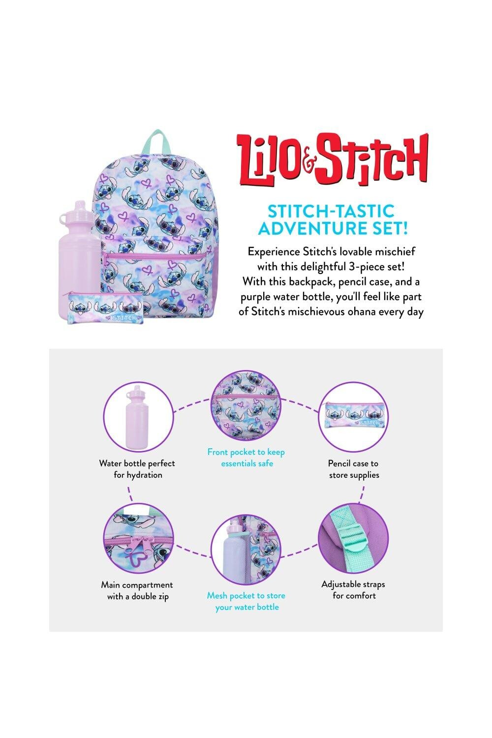 Погрузитесь в веселье с нашим набором рюкзаков для девочек «Лило и Стич» — красочным чудом тай-дай в оттенках синего, розового и фиолетового. Крутой Стич носит солнцезащитные очки на школьной сумке и пенале, распространяя атмосферу острова, куда бы вы ни пошли. Не забудьте подходящую бутылку для воды нежно-розового цвета, которая станет вашим идеальным компаньоном для стильного утоления жажды. Приготовьтесь собирать вещи, писать и пить, чтобы отправиться в приключенческий день со Стичем!