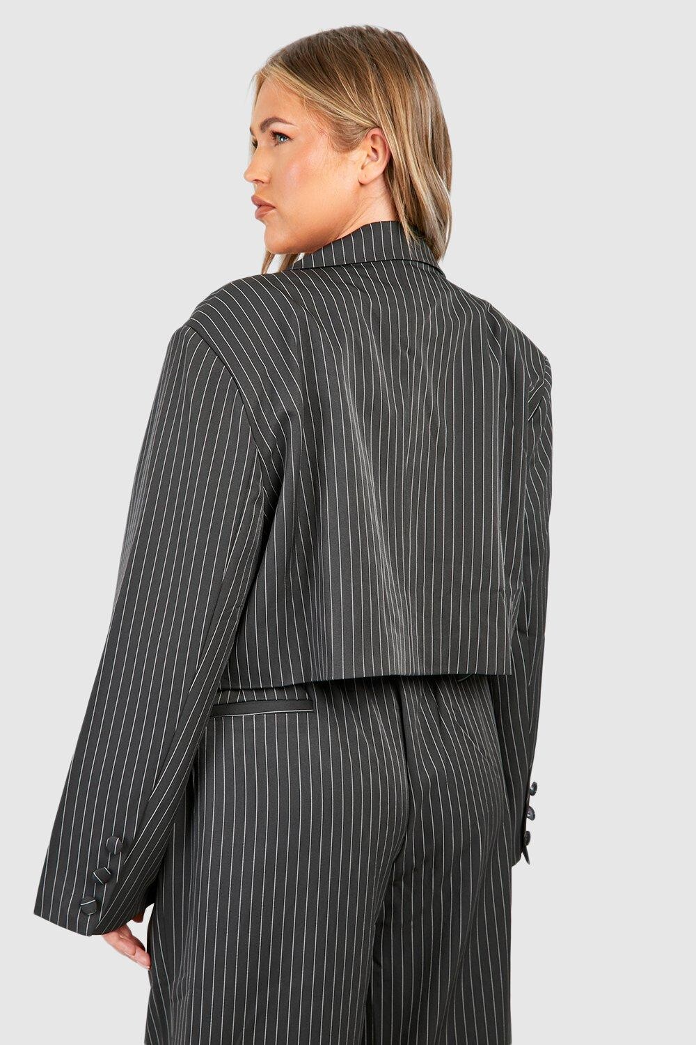 Укороченный пиджак в полоску Plus boohoo, серый 4 845₽