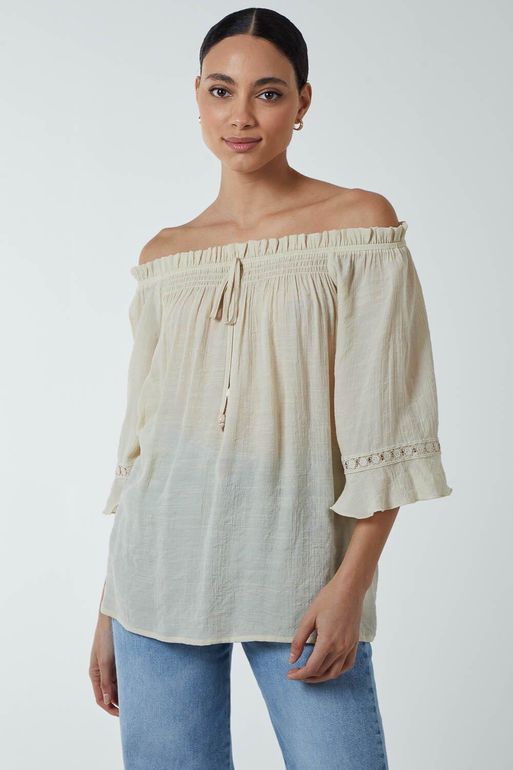 Топ с открытыми плечами и завязкой спереди Blue Vanilla, бежевый