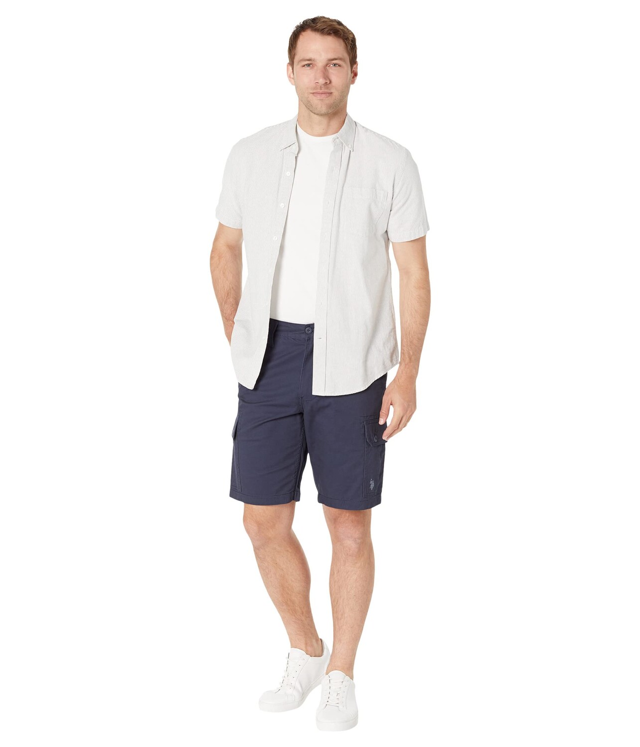 Приготовьтесь к быстрой прогулке по окрестностям в классических шортах-карго U.S. POLO ASSN.. Свободный крой. Модель без застежек. Пояс с петлями. Застежка на молнию и пуговицы спереди. карманы.Длина выше колена.100% хлопок.Машинная стирка, сушка в стиральной машине.Импорт. Подъем спереди: 11 дюймов, Подъем сзади: 12 дюймов, Разведение ног: 18 дюймов