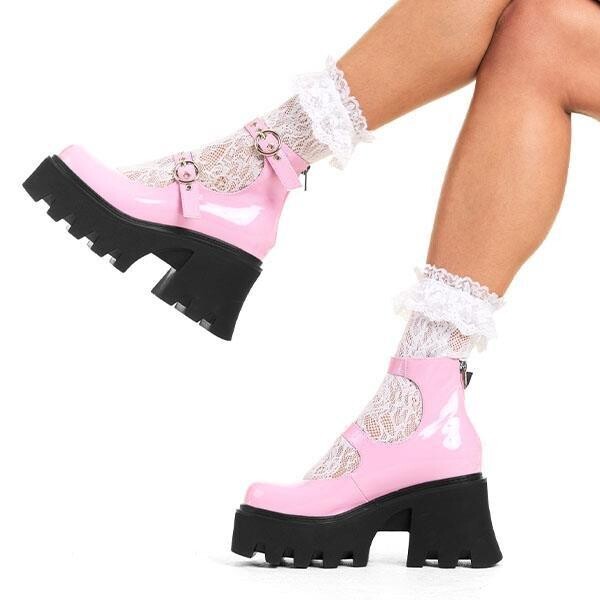 Ботильоны на массивной платформе с пряжками Slow Jamz лакового розового цвета. Эти ботинки на платформе оснащены двумя регулируемыми ремнями с серебряными пряжками и петельками. Эти ботинки на платформе, изготовленные из экологически чистых материалов и на 100% не подвергающихся жестокому обращению, настолько же этичны, насколько и шикарны. – Высота платформы – Длина до щиколотки – Два регулируемых ремня – Серебряные пряжки и люверсы – Закругленный носок – Высокий каблук – 100 % веганский продукт Артикул: LMF 3600 – PinkPAT