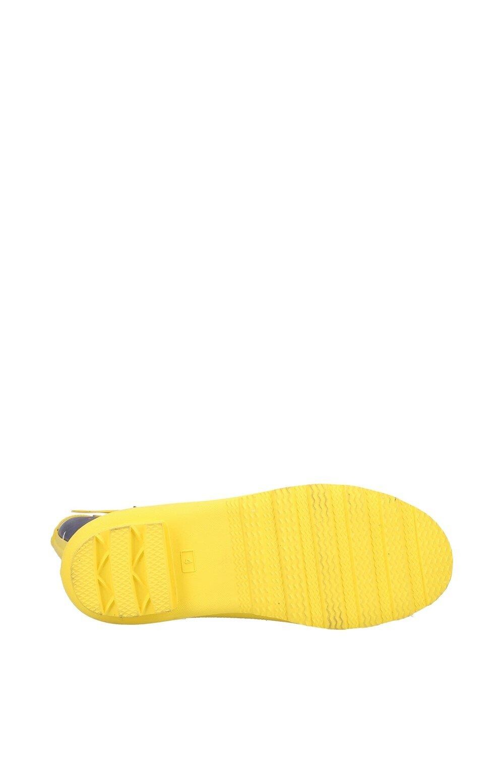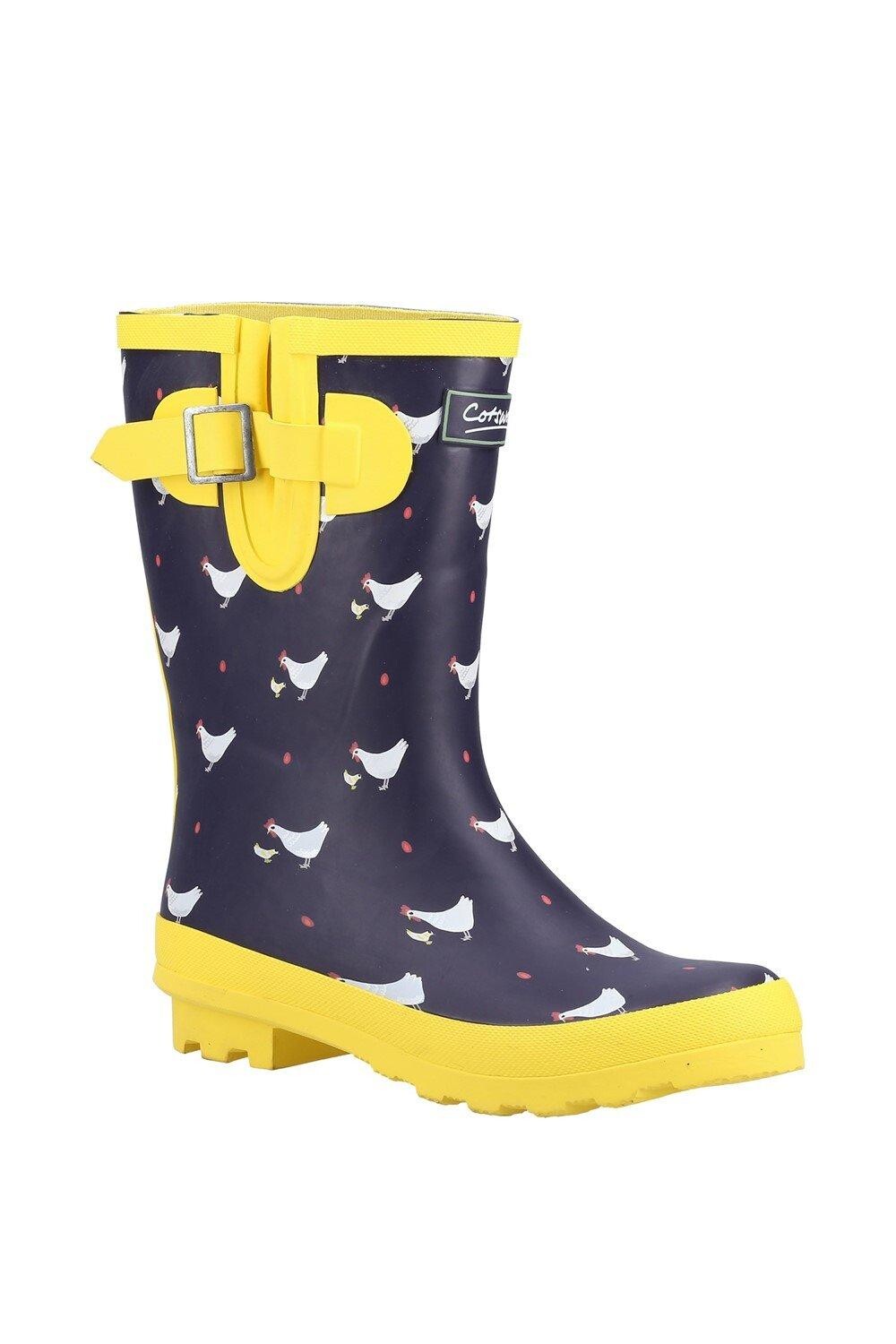 Ботинки средней высоты с принтом Farmyard и дополнительной регулировкой в ​​области голени. Полностью водонепроницаемый резиновый верх с красочным печатным рисунком. Практичная рифленая подошва и стильный массивный каблук высотой 25 мм. Идеальный женский праздничный резиновый сапог, обувь для сада или для прогулки с собакой.
