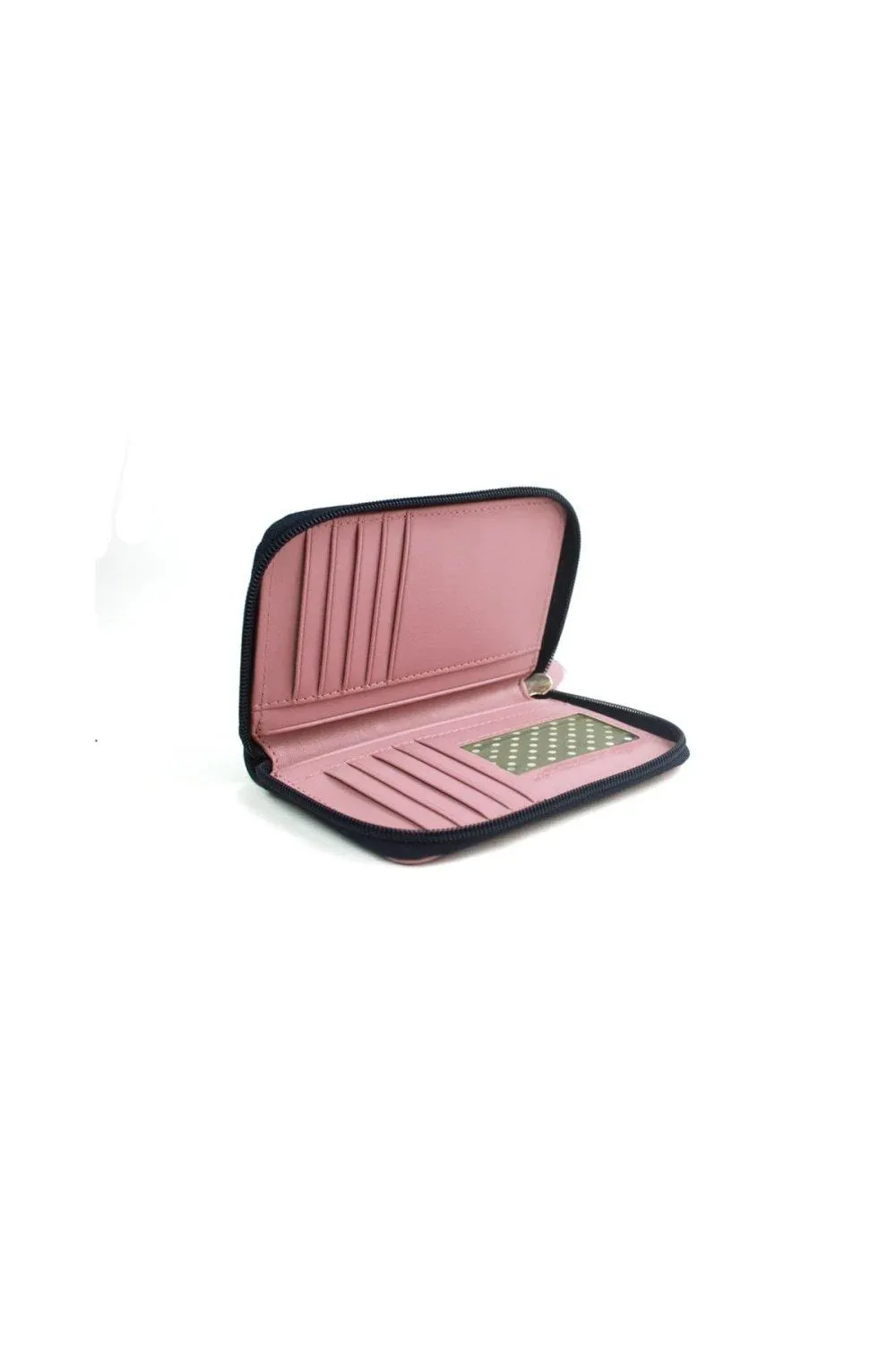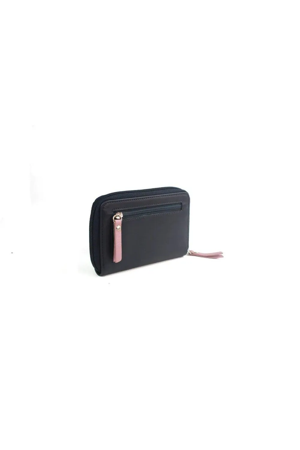 Материал: Кожа. Длина: 14см. Ширина: 9,5 см. Дизайн: контрастная панель, однотонная. Отделения: 1 основное отделение, окошко для удостоверения личности, заметки. Карманы: 1 передний карман, 2 накладных кармана, молния. 9 слотов для карт. Застежка: контрастная молния.