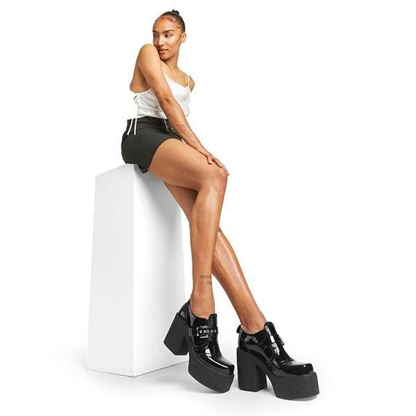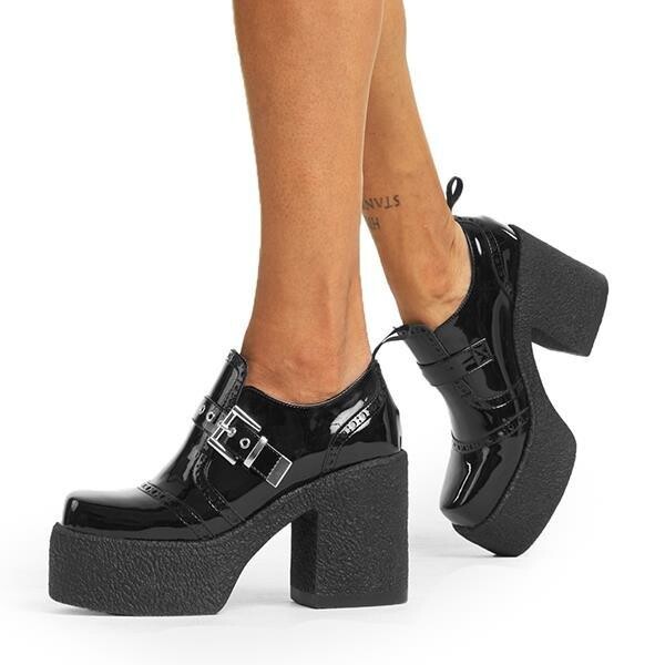 Туфли на массивной платформе Too Busy Don't Call из черной искусственной кожи. Эти веганские туфли имеют силуэт броги и массивную подошву на платформе. очень классный. Также имеется регулируемый ремешок с серебряной пряжкой квадратной формы. Изготовлено из экологически чистых материалов и на 100% без жестокости. эти туфли настолько же этичны, насколько и стильны! - Массивная платформа - Броги - Квадратный носок - Регулируемый ремешок - Серебряная пряжка - Серебряные люверсы - 100% веганский продукт Артикул: LMF 4089 - BlackPAT