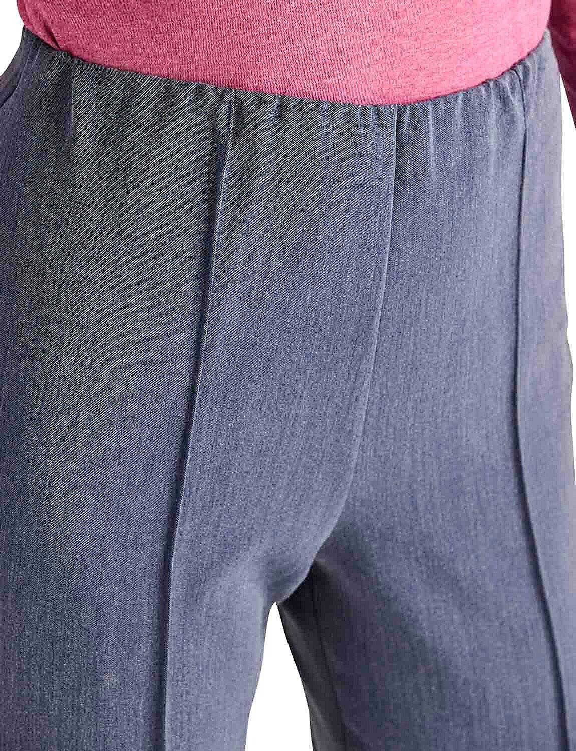 Удобные прямые брюки, подчеркивающие фигуру, с эластичной талией по всему периметру и защипами по переду. Черный, Джинсовый, меланжевый. Длина штанин темно-синего или каменного цвета: 25 дюймов (очень короткие), 27 дюймов (короткие), 29 дюймов (обычные).