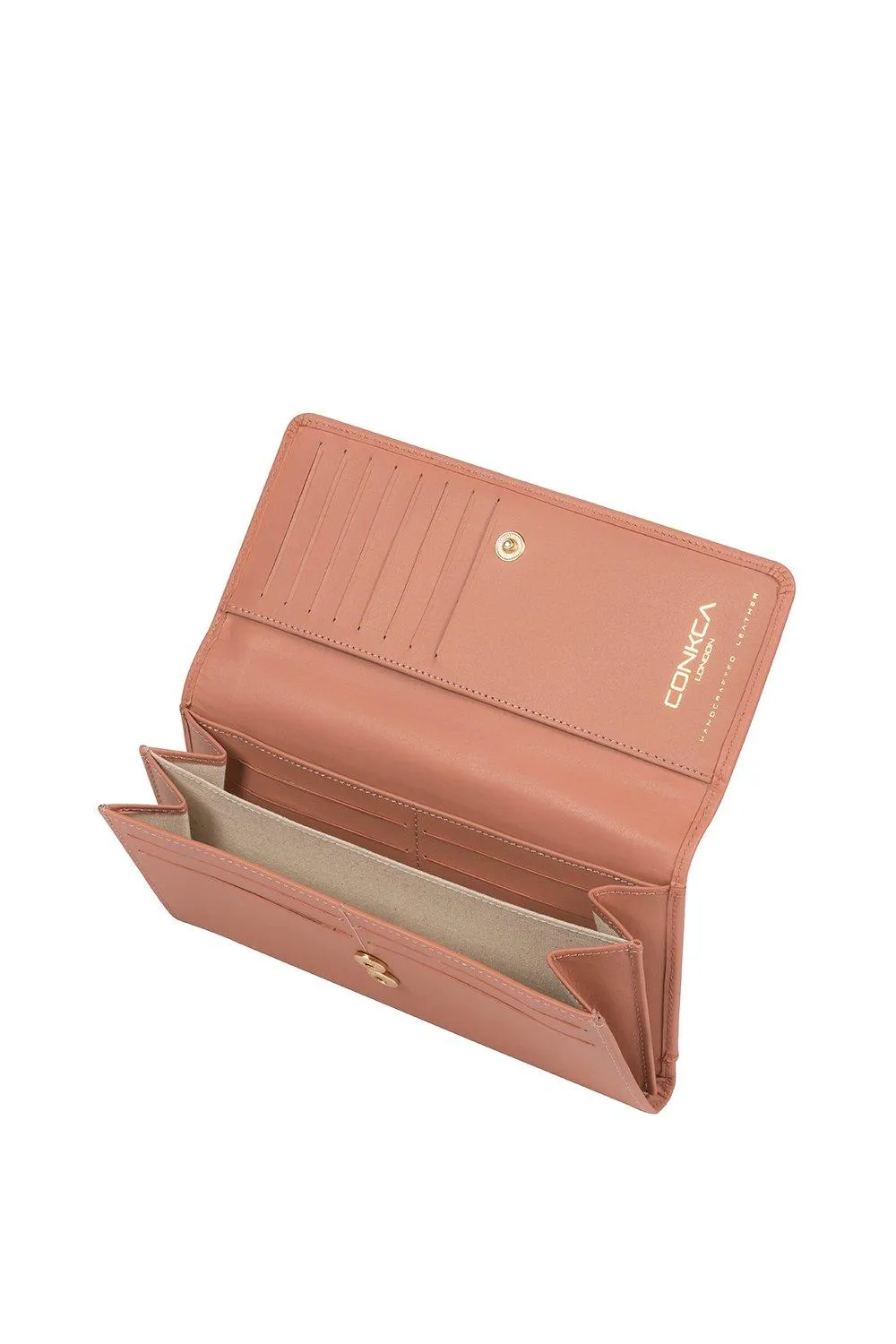 Кошелек Honey от Conkca London изготовлен из высококачественной кожи, имеющей гладкую и роскошную отделку. Застегивается на две кнопки, скрывающие восемнадцать прорезей для пластиковых карт и четыре накладных кармана, на подкладке из натурального, необработанного 100 % хлопка. Дополнительное место для хранения вещей обеспечивает карман на молнии, который идеально подходит для хранения мелочи. Украшен неповторимым логотипом белки Conkca, фурнитурой и молниями золотого цвета. Поставляется в хлопковом мешочке Conkca London, который идеально подходит для подарка.