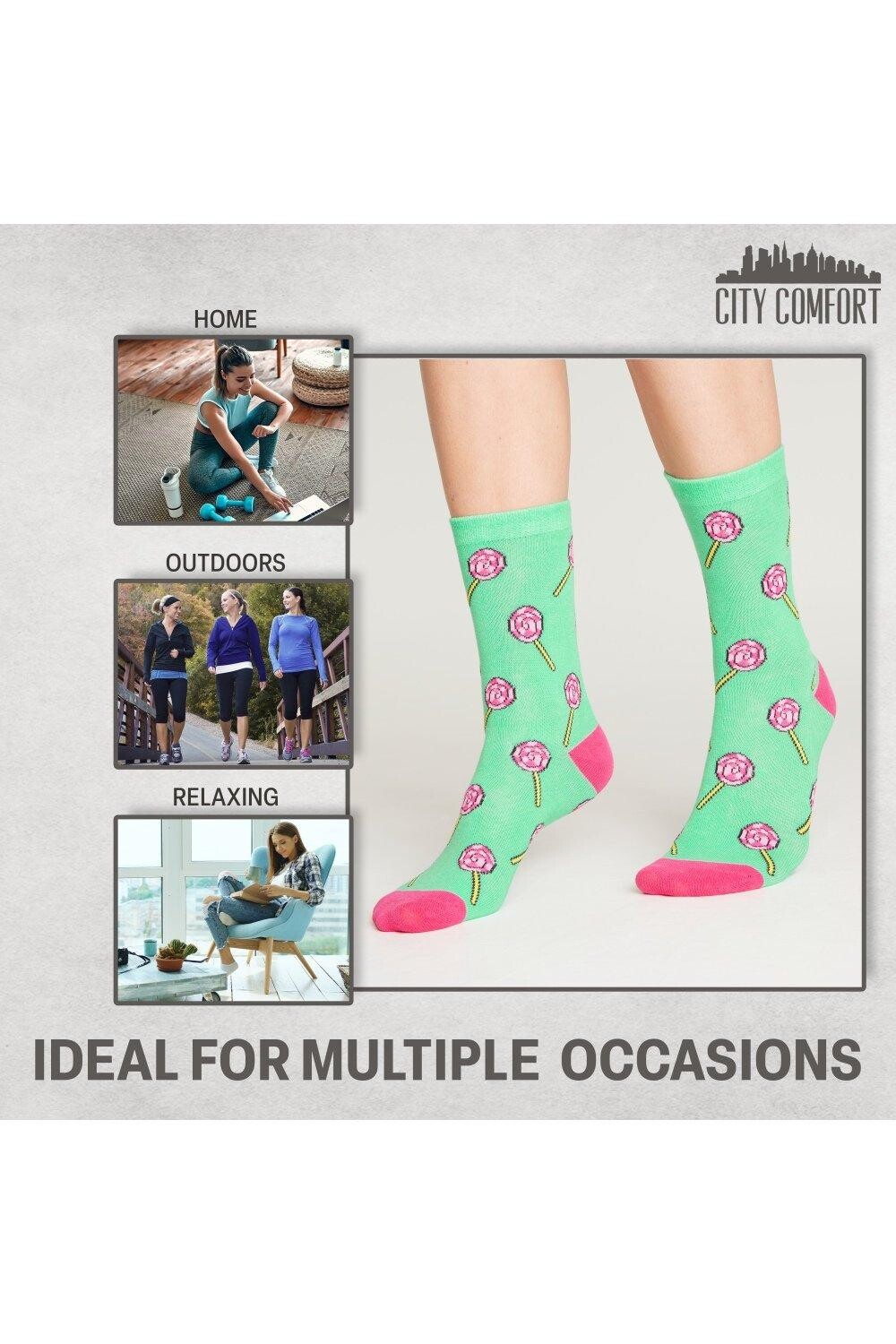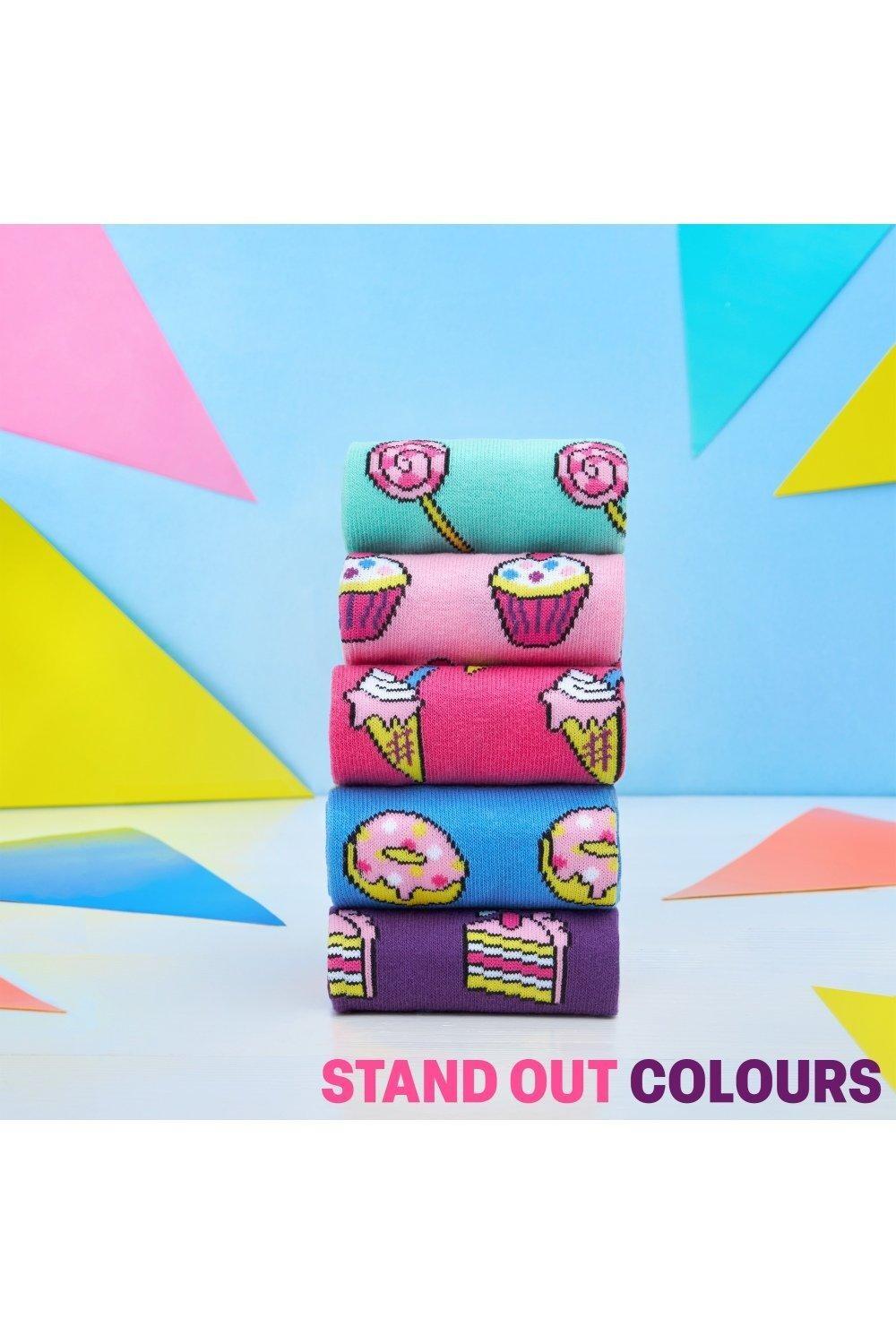 Упаковка из 5 женских носков с яркими принтами Добавьте ярких красок в свой день с помощью этих милых женских носков. с яркими принтами. Эти классные носки идеально подходят для повседневного ношения. Материал дышащий и эластичный, что делает их удобными рабочими носками. или отлично подходят для выходных или отдыха дома — они обязательно сделают ваш день веселее в любом случае. Ищете женские подарки или наполнители для чулок на Рождество. ? Эти яркие носки станут отличным подарком для вашей мамы, сестры или подруги и обязательно украсят их день! Материал -Животные, Мульти Микс Мульти и мульти-радуга: 70 % хлопок, 28 % полиэстер, 2 % эластан. Леопардовый принт и смешанный животный принт: 98 % полиэстер, 2 % эластан.