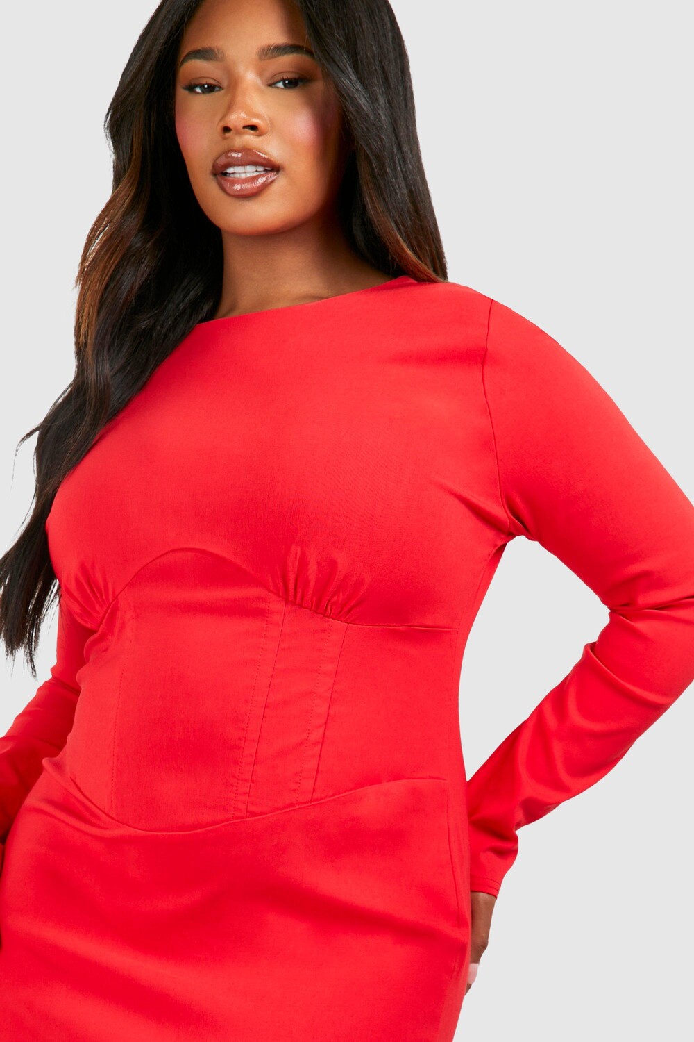 Мини-платье Plus с бенгальским корсетом boohoo, красный