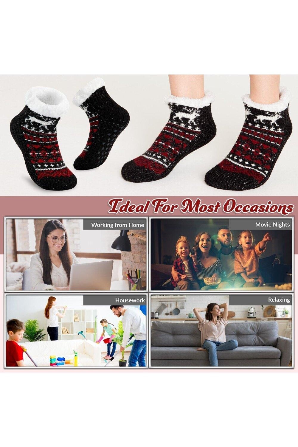 Уютные вязаные флисовые носки для женщин и подростков. Почувствуйте комфорт с этими милыми зимними носками. в них вам будет уютно даже в самые холодные дни. Сохраняйте тепло и экономьте на счетах за электричество этой зимой с этими уютными носками-тапочками. Они сделаны из приятного флиса и сохраняют тепло. Эти женские тапочки не только очень теплые и уютные. но они также оснащены противоскользящими накладками внизу для улучшения сцепления что делает их идеальными для ношения дома. Повысьте свой комфорт и познакомьтесь с новым основным продуктом для работы дома. расслабляюсь вечером за просмотром фильмов или носить в постели, чтобы выспаться очень уютно. Ищете подарки для женщин? Эти милые носки станут отличным рождественским подарком для женщин и подростков или прекрасным подарком на день рождения или особый случай.