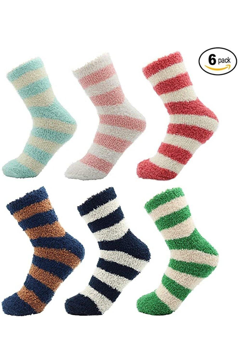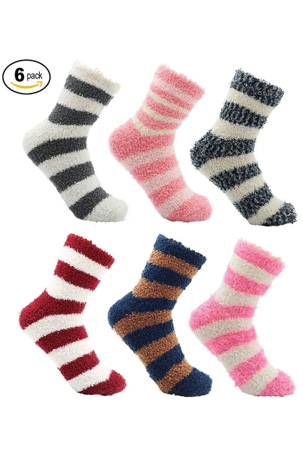 Уютные зимние носки для женщин. Пушистые супермягкие термобелье для женщин. Домашняя одежда. Качественные тапочки. Носки для сна. Упаковка из 6 штук. СУПЕР МЯГКИЙ. Наши флисовые носки были созданы для вас, наших клиентов, чтобы обеспечить вам максимально комфортные ощущения. Каждая пара наших пушистых носков, входящих в комплект из 6 штук, изготовлена из высококачественного ультрамягкого флиса, что обеспечивает постоянный комфорт женщинам и девочкам. СЛУЧАЙНО ВЫБРАННЫЕ ЦВЕТА. Наши уютные женские носки представлены во множестве цветов, вы не сможете выбрать свои любимые, поскольку каждый из наших наборов из 6 женских носков выбирается случайным образом среди широкого спектра цветов. Кто знает, какие цвета вы получите среди широкого спектра цветов радуги, но мы уверены, что вы будете очень довольны цветами, которые мы лично выбрали для вас. ИДЕАЛЬНЫЙ ПОДАРОК. Эти пушистые носки в полоску поставляются в упаковке по 6 штук. Получите набор в подарок подруге, коллеге, маме, сестре или даже для кого-то особенного. Подготовьте свой рождественский подарок с помощью наших супермодных женских пушистых носков. НЕПРЕВЗОЙДЕННЫЙ КОМФОРТ. В наших носках вам будет тепло и приятно даже в самые холодные ночи. Они идеально подходят для размеров 3–5 Великобритании (35–38 ЕС), а эластичная лента очень мягкая, что делает их идеальными даже для женщин с нежными ногами. Их плотный термовязаный материал обеспечит уютное зимнее тепло, и их можно не только использовать как в постели, так и в качестве домашней одежды для дома, но и оживить скучный наряд, если вы чувствуете себя стильно. УДОВЛЕТВОРЕНИЕ ГАРАНТИРОВАНО. Каждая пара наших пушистых женских носков изготовлена из лучших материалов, обеспечивающих длительный срок службы. Их можно стирать в машине, они выдерживают многократные стирки, не теряя при этом своего очарования. Но если вы недовольны нашим продуктом, пожалуйста, свяжитесь с нами, и мы сделаем все правильно для вас.