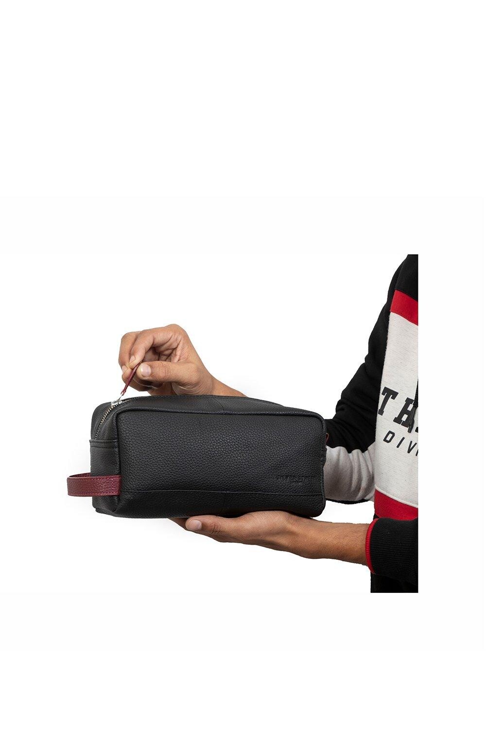 Факсимиле обильного раскрытия зева. Кожаная сумка для стирки Santiago — идеальная кожаная сумка для стирки, в которой можно носить с собой средства ухода за собой во время путешествия.