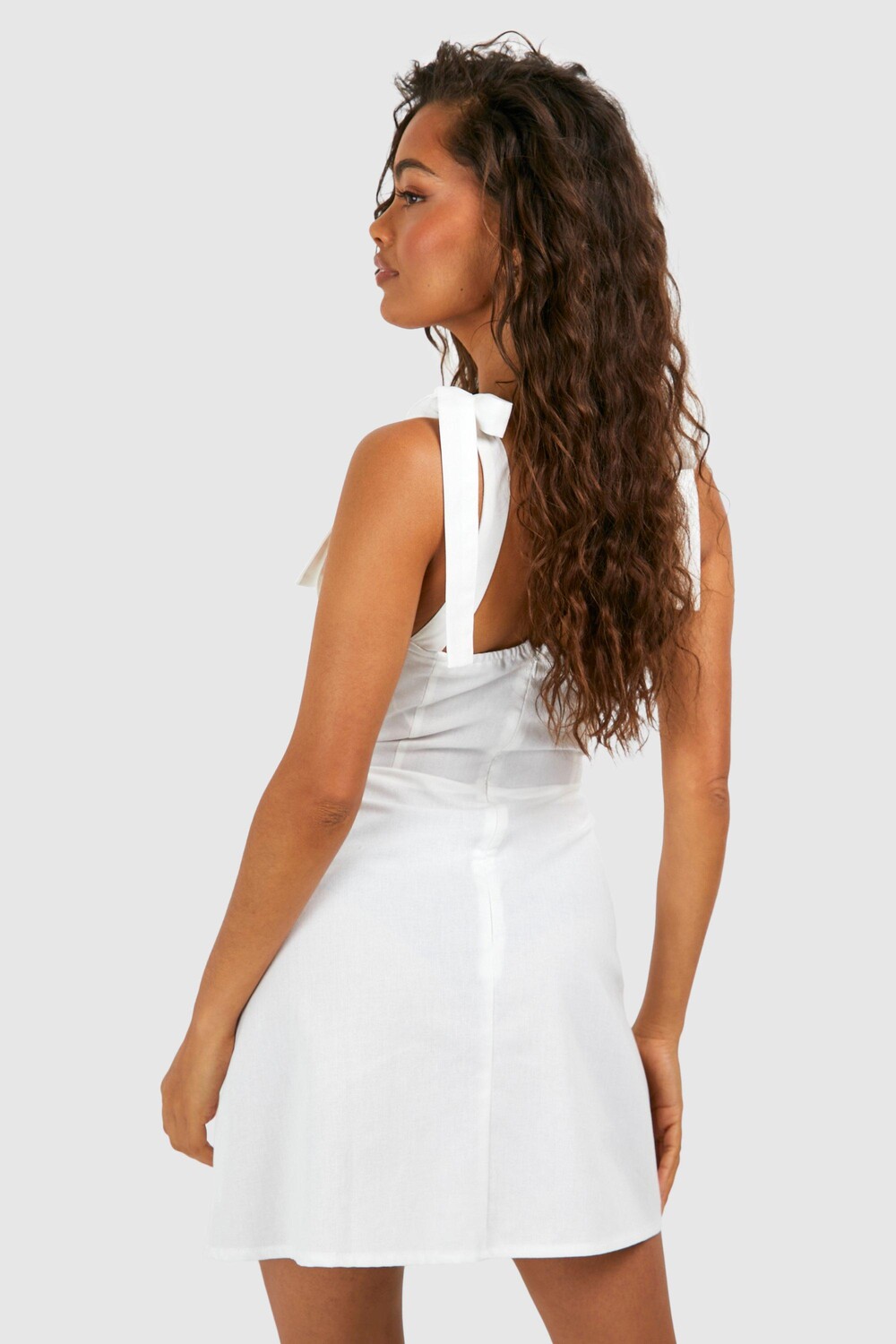 Мини-платье с корсетом на завязках boohoo, белый 3 844₽