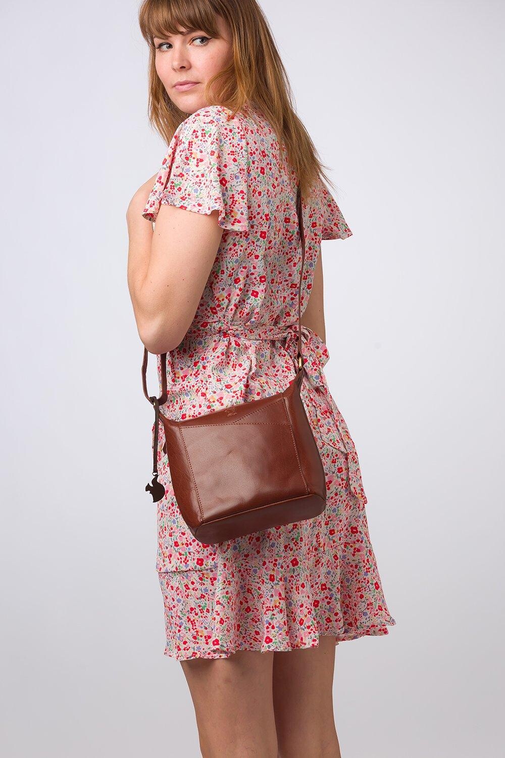 На передней части сумки имеются привлекательные перекрывающиеся накладные карманы. Сумка через плечо Kiki из коллекции Conkca Signature Collection просто необходима. Просторное центральное отделение на подкладке из 100% хлопка скрыто застежкой-молнией и имеет два накладных кармана для всех необходимых вещей. Рядом с двумя накладными карманами спереди. дополнительный накладной карман сзади — идеально подходит для хранения вещей в дороге. Украшен просто элегантным логотипом Conkca, тисненным рядом с подвеской в виде белки Conkca. Сумка дополнена тонким регулируемым кожаным ремешком длиной 65 см.
