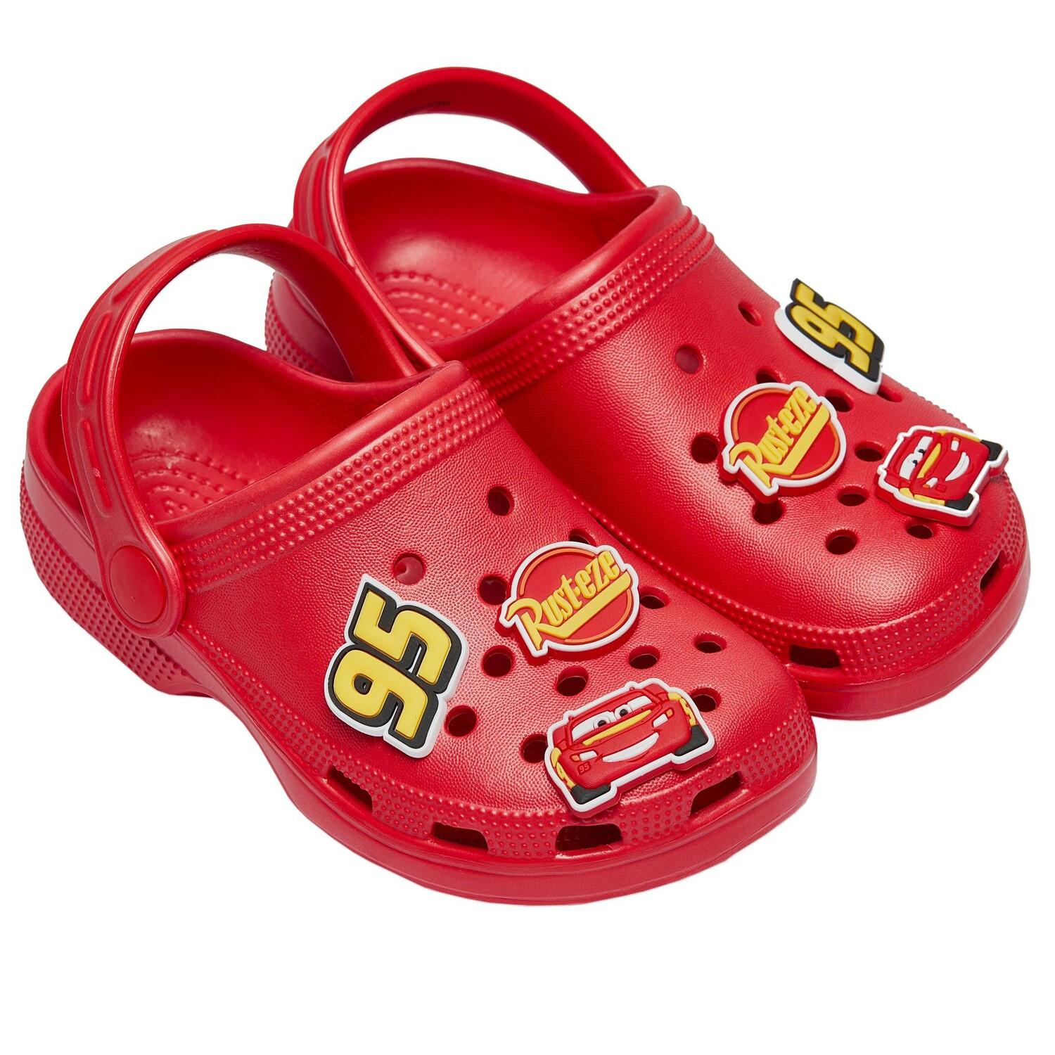 Наденьте эти ярко-красные туфли Disney Cars с изображением Молнии Маккуина и его друзей. и наблюдайте, как ваш маленький гонщик освещает трассу! Ремешок на щиколотке гарантирует, что эти роскошные кроссовки останутся на месте. независимо от того, как быстро ваш ребенок минует финишную черту! Эти яркие красные сабо «Тачки Диснея» — идеальный выбор для любого юного поклонника любимого фильма. Украшен значками с изображением Молнии Маккуина, его знаменитого номера «95» и логотипом Rust-eze. эти сандалии - не просто обувь, а кусочек ностальгии. Удобный ремешок на щиколотке надежно фиксирует их. что делает их идеальными для игровых приключений. Приготовьтесь участвовать в гонках, играть и получать удовольствие от каждого шага!