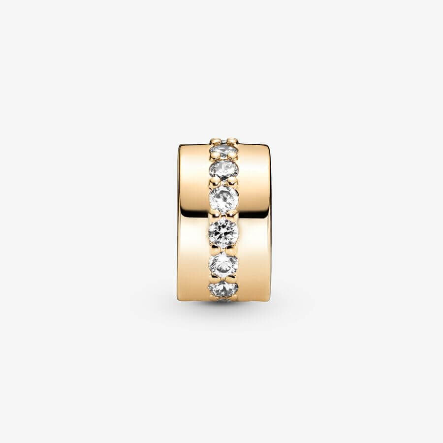 Придайте вашему образу немного блеска с помощью шарма-клипсы с прозрачным сверкающим рядом. Этот дизайн, выполненный вручную из золота 14 карат, украшен линией прозрачного кубического циркония, проходящей по середине. Наденьте эту подвеску-клипсу на свой любимый браслет отдельно, чтобы подчеркнуть индивидуальность. В качестве альтернативы, дополните теплый тон этого изделия мерцающим дизайном из стерлингового серебра для эффектной контрастной отделки. Этот брелок-клипса не имеет силиконовой ручки, поэтому он будет скользить, если его не закрепить на нитках (две выступающие разделительные планки).