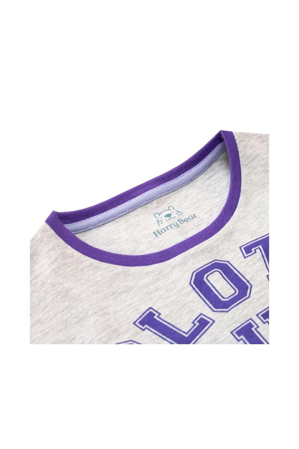 Наслаждайтесь ленивыми днями и ночами в этой очаровательной короткой пижаме-ленивце! Разработано Гарри Беаром Этот милый короткий пижамный комплект идеально подходит для более медленного темпа жизни! Топ с короткими рукавами изображает дремлющего ленивца в ночном колпаке под надписью «Sloth Out» с тонкой блестящей каймой. Комплект дополняют сиреневые шорты с принтом по всей поверхности, включая облака. луны и птицы. В завершение завязанная вручную лента станет идеальным подарком!