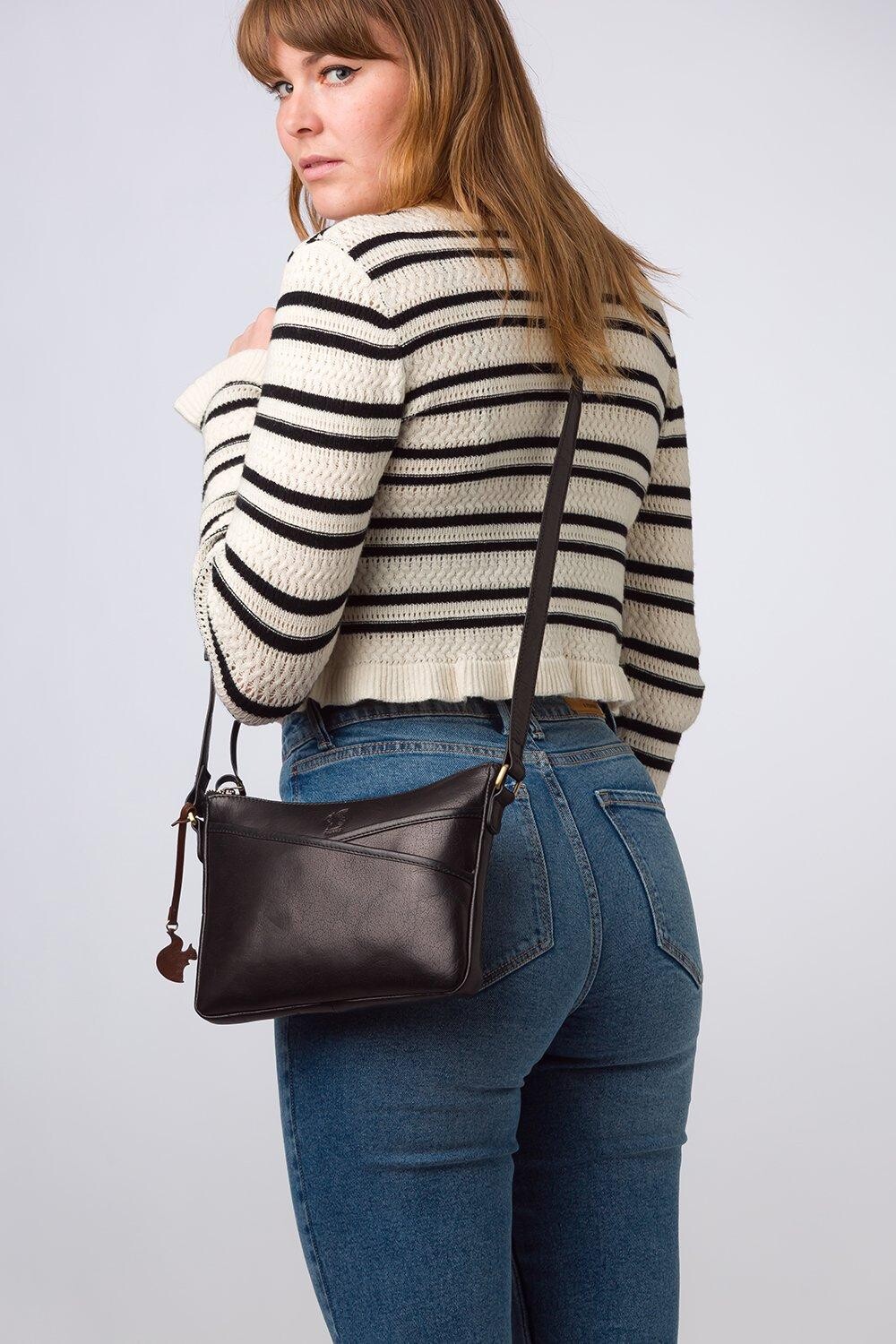 Привлекательные накладные карманы, украшающие переднюю часть модели «Виола» из коллекции Conkca's Signature, придают этому аксессуару уникальный вид. Дополнительное место для хранения обеспечивается накладным карманом внутри основного отделения. Основное отделение на подкладке из 100% хлопка и застегивается на латунную металлическую молнию. Это дополняется подходящей фурнитурой на регулируемом тонком кожаном ремешке, максимальная длина которого составляет 65 см. Подвеска и логотип Conkca в виде белки слепым тиснением рядом с подвеской создают элегантный завершающий штрих.