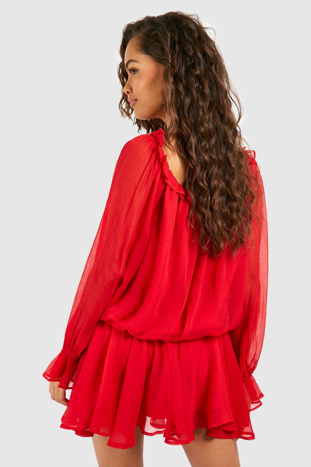 Шифоновое мини-платье с блузкой boohoo, красный 3 078₽