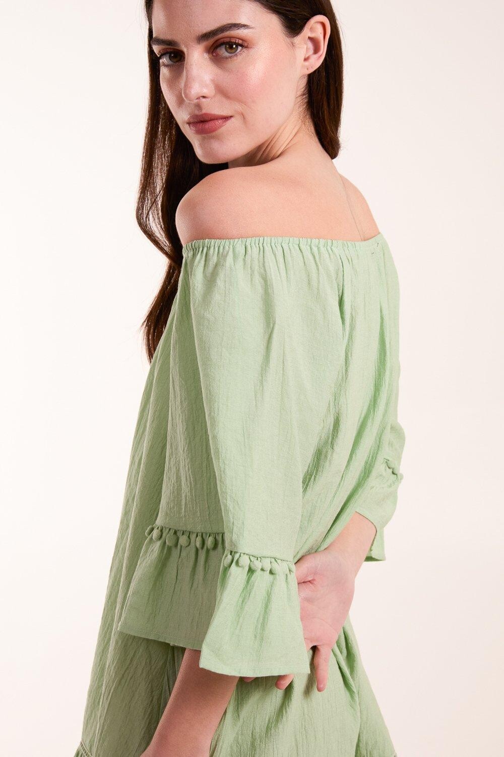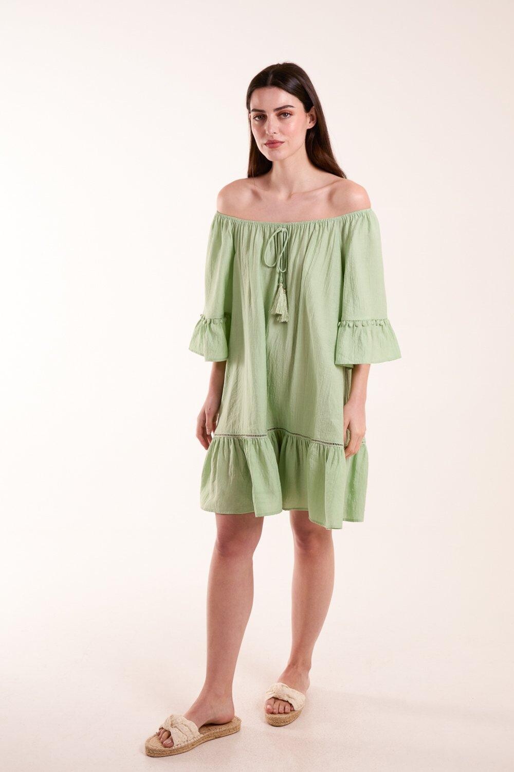 Платье-туника с открытыми плечами Blue Vanilla, зеленый
