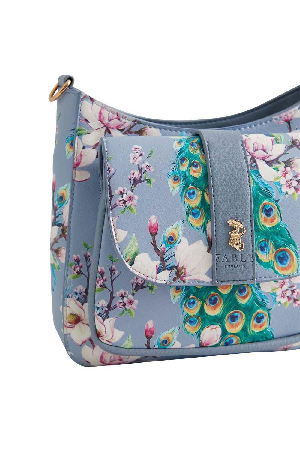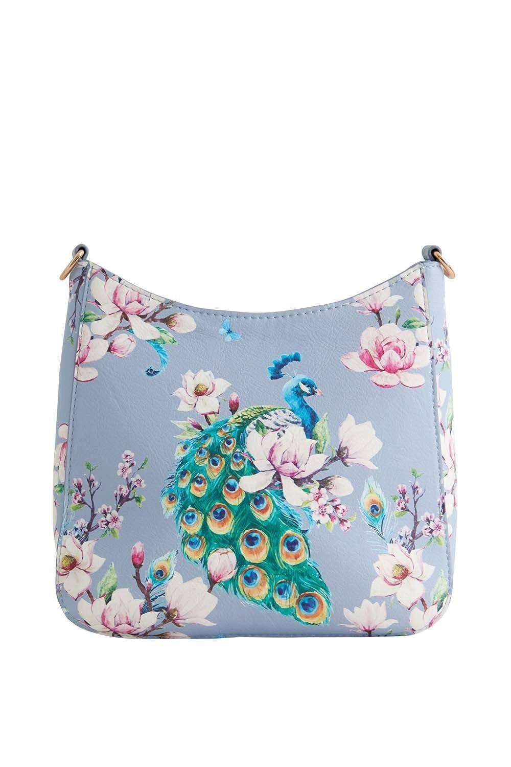 Гордый павлин с принтом «Павлин» сидит среди весенних цветов, демонстрируя замысловатое великолепие своего хвоста, на винтажной синей основе. Эта большая сумка через плечо имеет несколько карманов, которые помогут хранить ваши повседневные сокровища в порядке и в безопасности. Удобный регулируемый ремешок украшен плетеной отделкой. Сумка изготовлена с любовью из переработанных материалов, украшена золотистой фурнитурой и дополнена нашей культовой подвеской в виде сони.