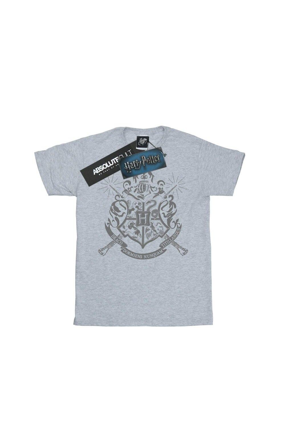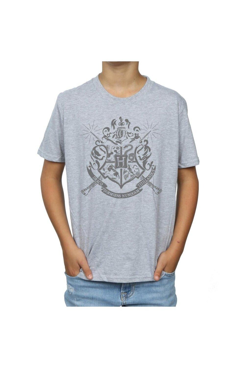 Футболка со значком Хогвартса и палочками Harry Potter, серый