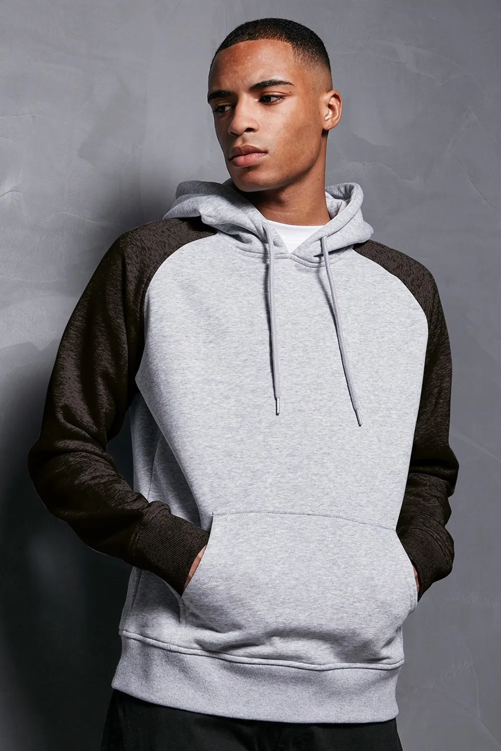 Материал: 50% хлопок, 50% полиэстер. Ткань: матовый флис. 270 г/м2. Дизайн: Контраст. Особенности капюшона: регулируется, затягивается. Настраиваемый, без тегов. Подол: Ребристый. Вырез: с капюшоном. Тип рукава: с длинными рукавами, реглан. Манжета: Ребристая. Карманы: Кенгуру. Застежка: перетянуть.