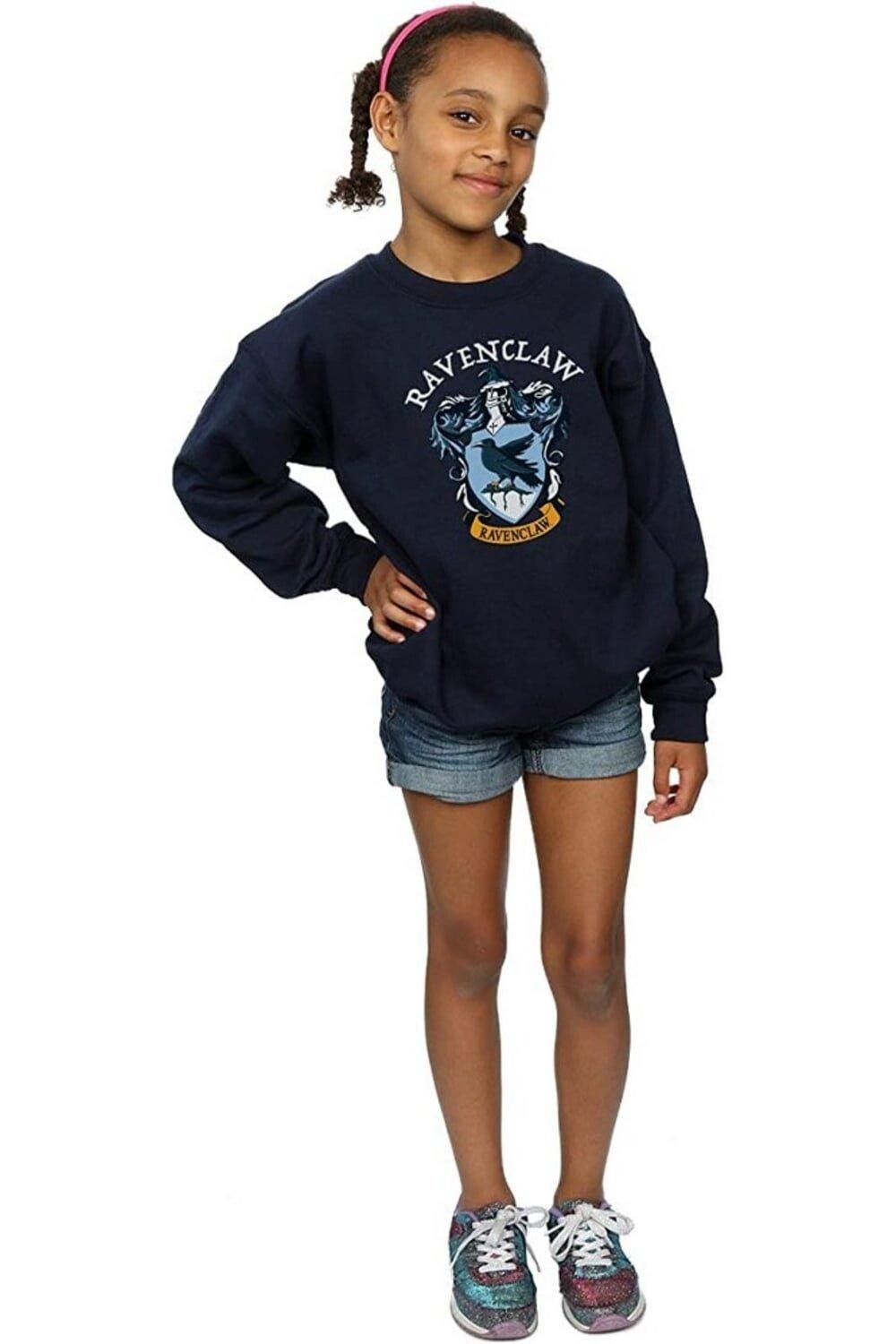 Материал: 50% хлопок, 50% полиэстер. Ткань: одинарный джерси. Дизайн: герб, принт, Рейвенкло. 280 г/м2. Технология ткани: Тяжелая. Подол: Ребристый. Лента на шее сзади. Вырез: круглый вырез, ребристый. Тип рукава: с длинными рукавами. Манжета: Ребристая. Подходит: обычный. Застежка: перетянуть. 100% официальная лицензия.
