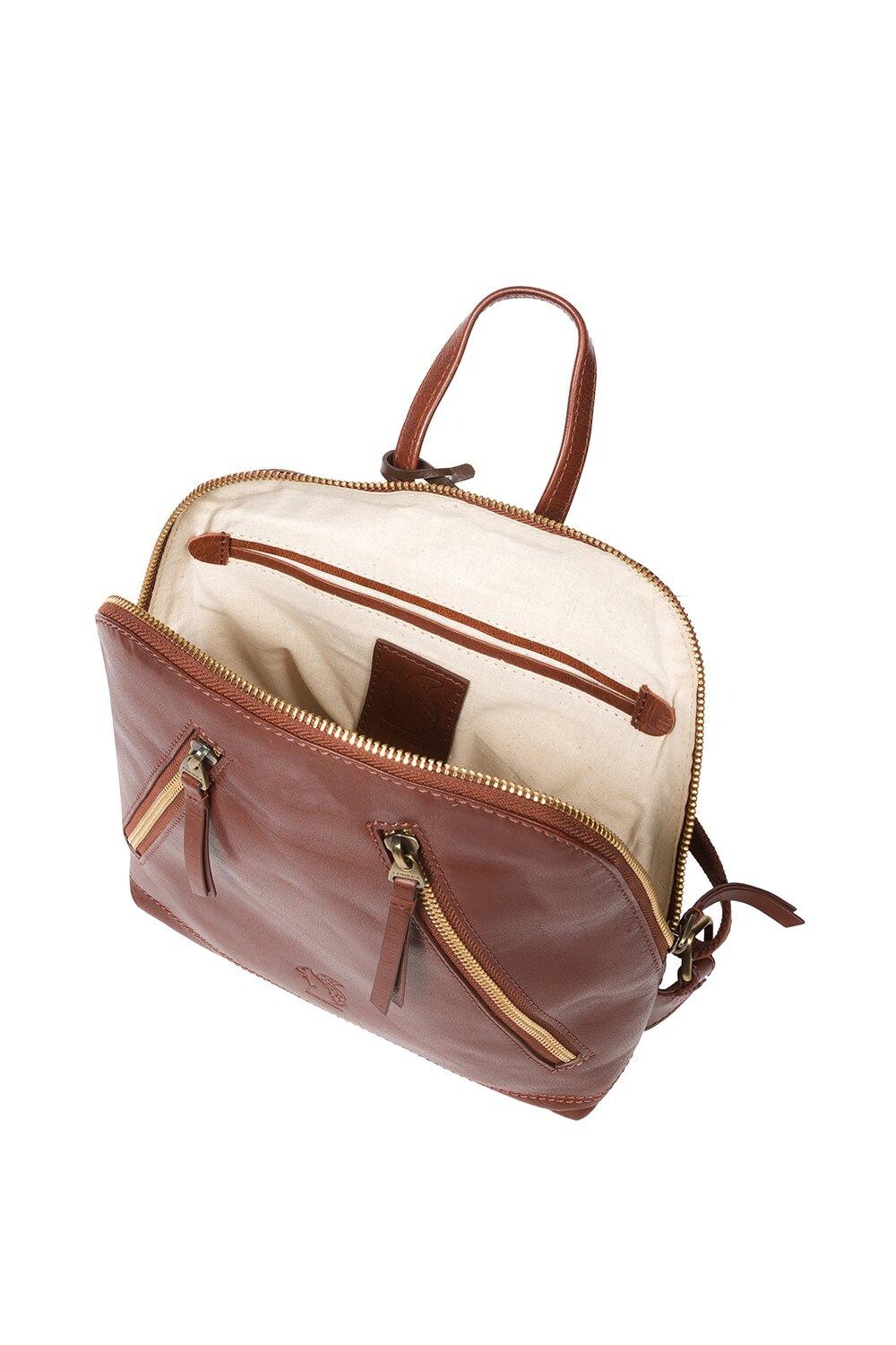 Рюкзак Zoe от Conkca London, изготовленный вручную из натуральной кожи, имеет классический дизайн, дополненный современными элементами. Уникальная круглая застежка-молния скрывает просторное отделение на подкладке из 100 % хлопка, дополненное двумя наклонными карманами на молнии на передней части сумки, которые идеально подходят для хранения вещей в дороге. Аксессуар дополнен регулируемыми тканевыми лямками и кожаной ручкой. Украшено неповторимой подвеской в виде белки Conkca London и тисненым логотипом Conkca London.