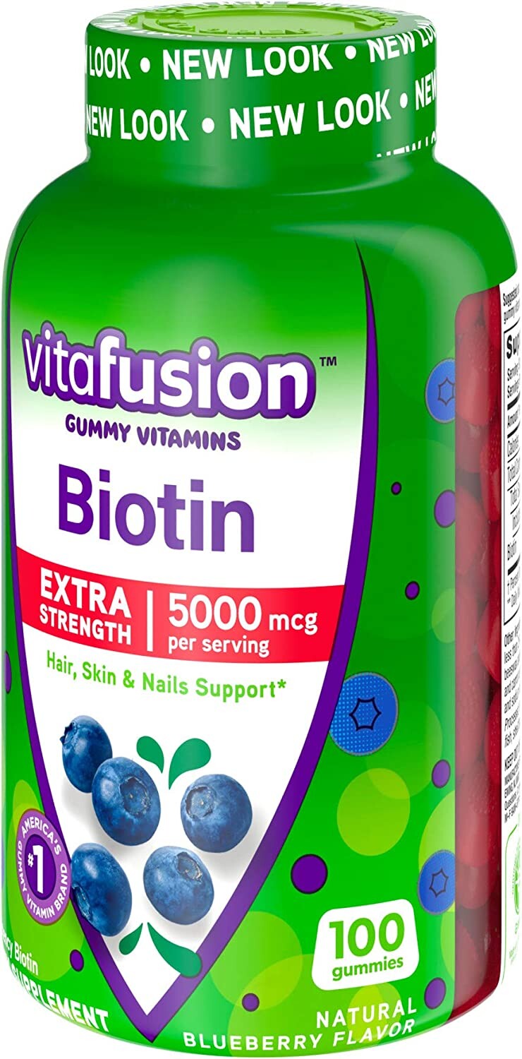 Биотин 5000 мкг в виде жевательных таблеток со вкусом голубики.