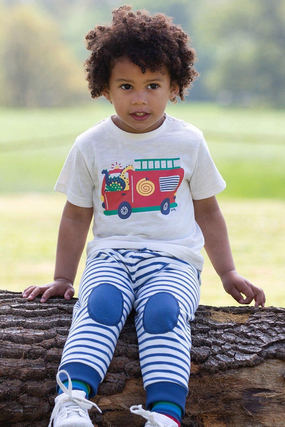 Эта потрясающая футболка с пожарной машиной просто идеальна! Модель выполнена из дышащей ткани кремового цвета и украшена забавным принтом «Пожарная машина». Сможете ли вы заметить друзей-динозавров, которые сели за руль? Сочетайте с джоггерами или леггинсами и получите идеальный наряд для игр. Изготовлен из 100% органического хлопка с застежками-кнопками для легкой смены.