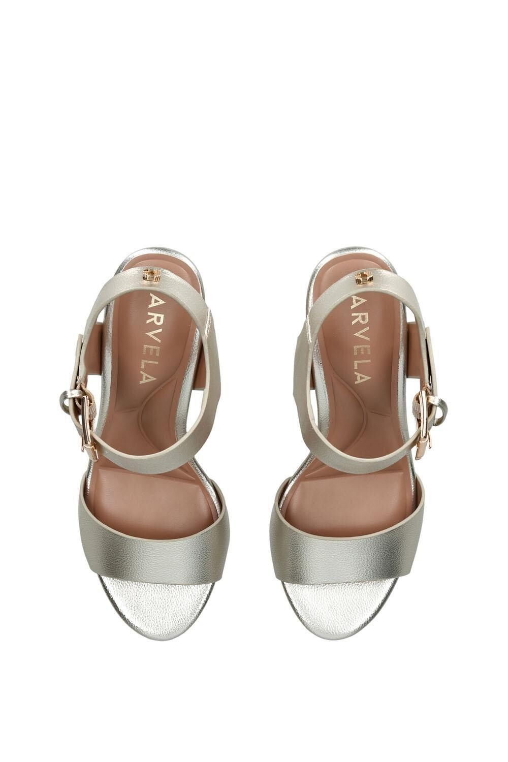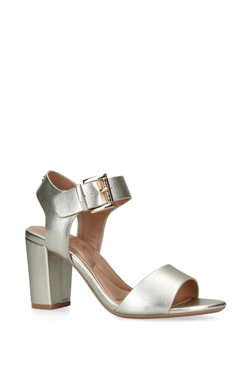 Сандалии Carvela Sadie выполнены в форме буквы V из металлического золотого цвета, имеют широкий ремешок на щиколотке с эффектной пряжкой и устойчивый каблук, сужающийся к основанию. Высота каблука: 80 мм.