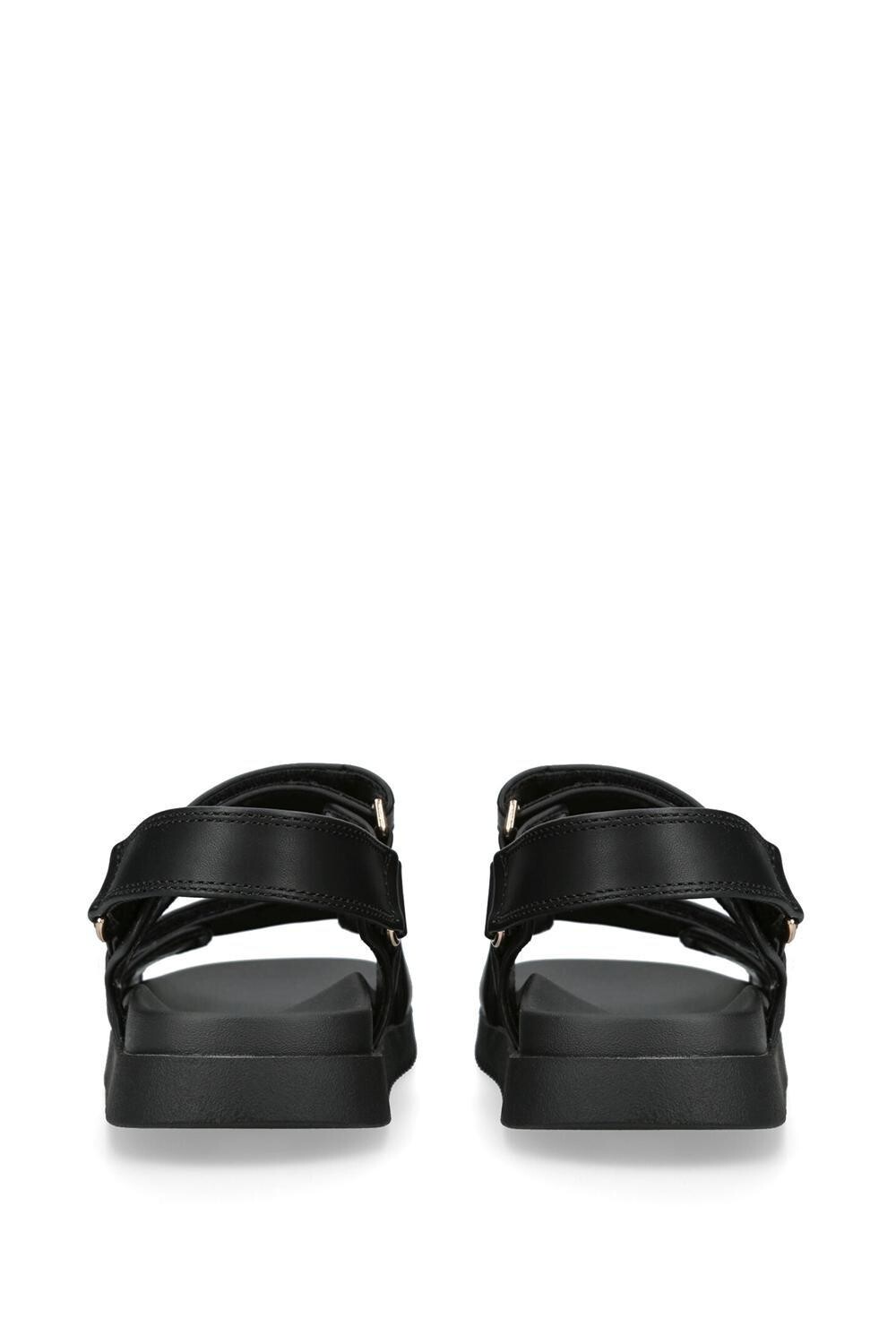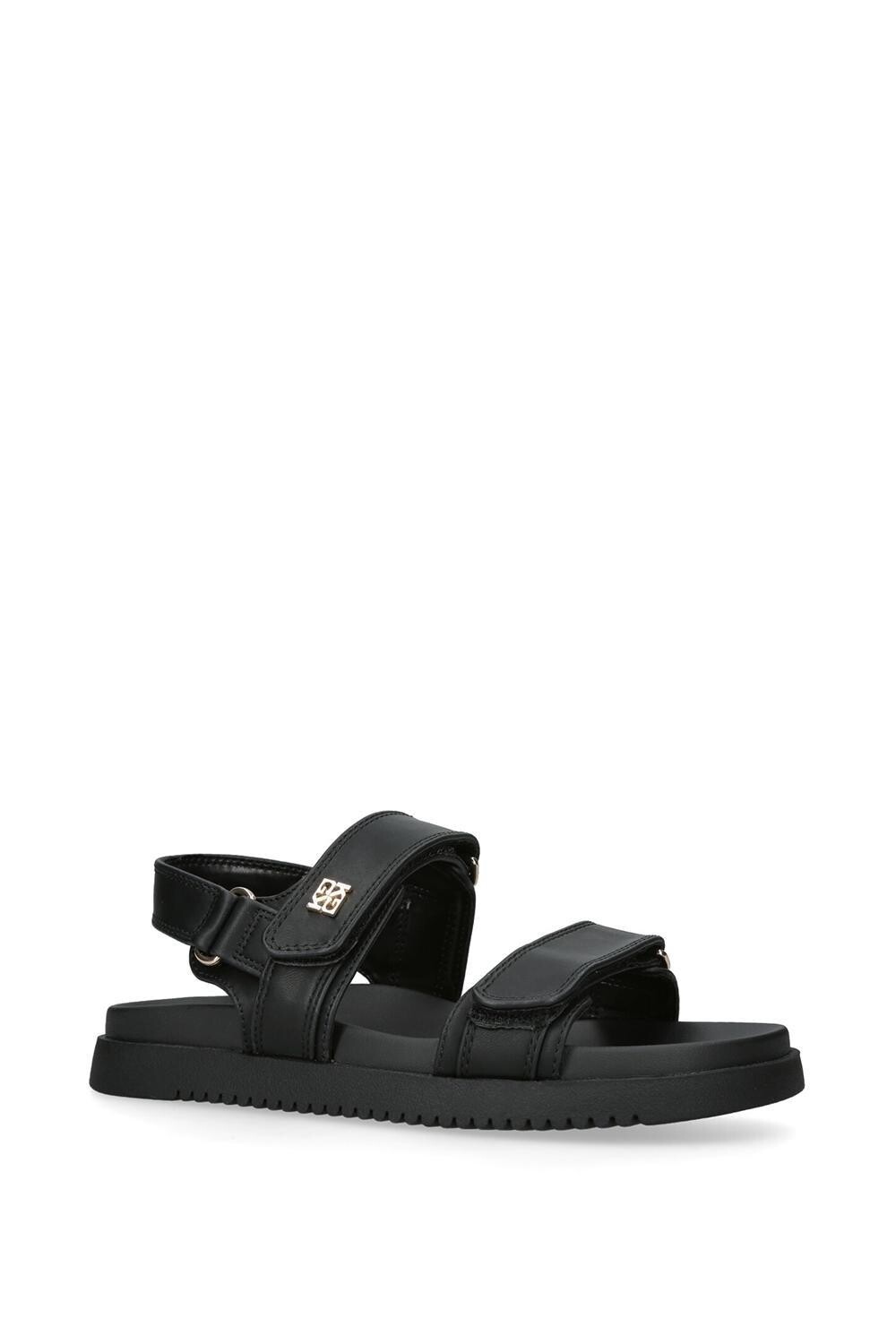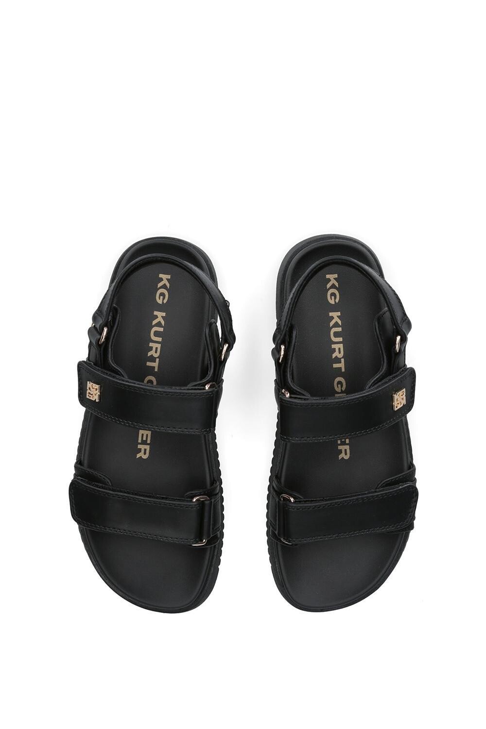 Сандалии KG Kurt Geiger Rory имеют свежий черный верх, выполненный из альтернативной мягкой кожи. Каждый ремешок застегивается на липучку, а на верхнем ремешке имеется золотистая застежка KG.