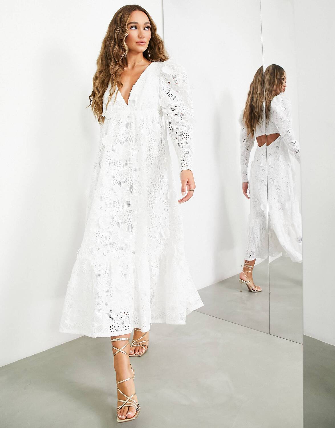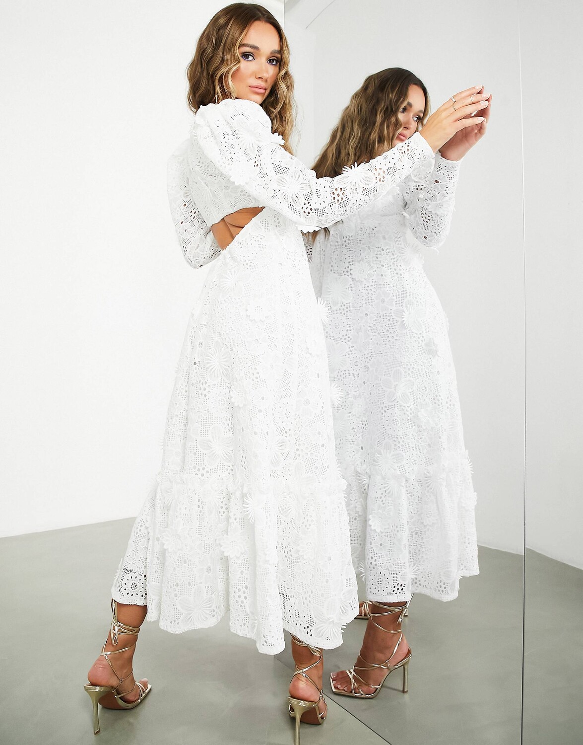 Белое платье макси с объемным цветочным принтом и вырезом на спине ASOS EDITION