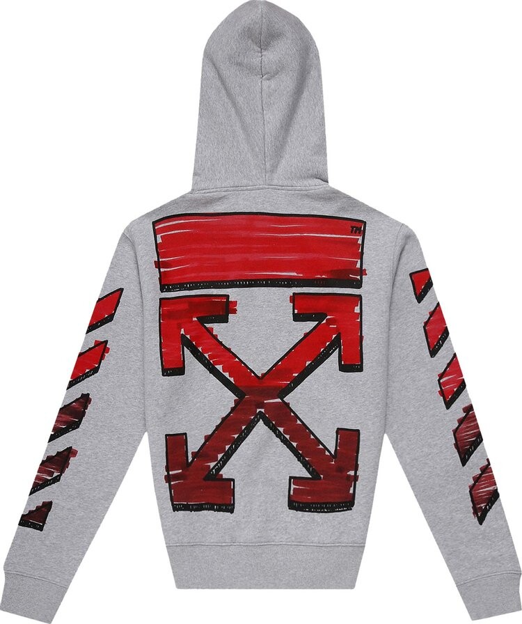 Худи Off-White Marker Slim Hoodie Melange Grey/Red, серый 82 892₽