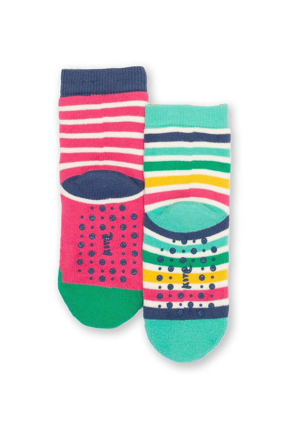 Можно стирать в машине при 40 градусах или при 30 градусах, чтобы беречь планету | Сделано в Турции | 90 % органический хлопок, 8 % полиамид, 2 % эластан | Лицо лягушки и дизайн полос | Махровая вязка с цепкими пятнами на подошве | Две упаковки | Исследуйте Kite для координации предметов