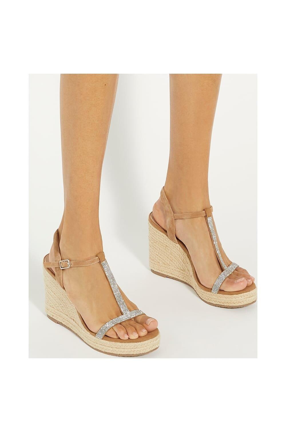 Добавьте нотку гламура в свой праздничный образ с помощью наших эффектных сандалий Kitten. Этот Т-образный силуэт, выполненный из лучшего материала, украшен бриллиантами, которые обязательно сверкают при каждом шаге. Эта модель, дополненная боковой пряжкой и закрепленная на удобной плетеной танкетке, позволит вам легко перенестись с рабочего дня на ужин.