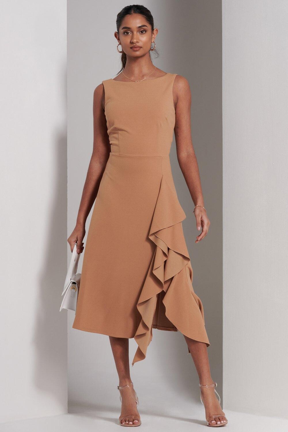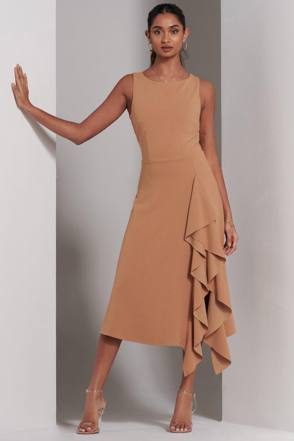 Платье миди Haylen с оборками Jolie Moi, коричневый