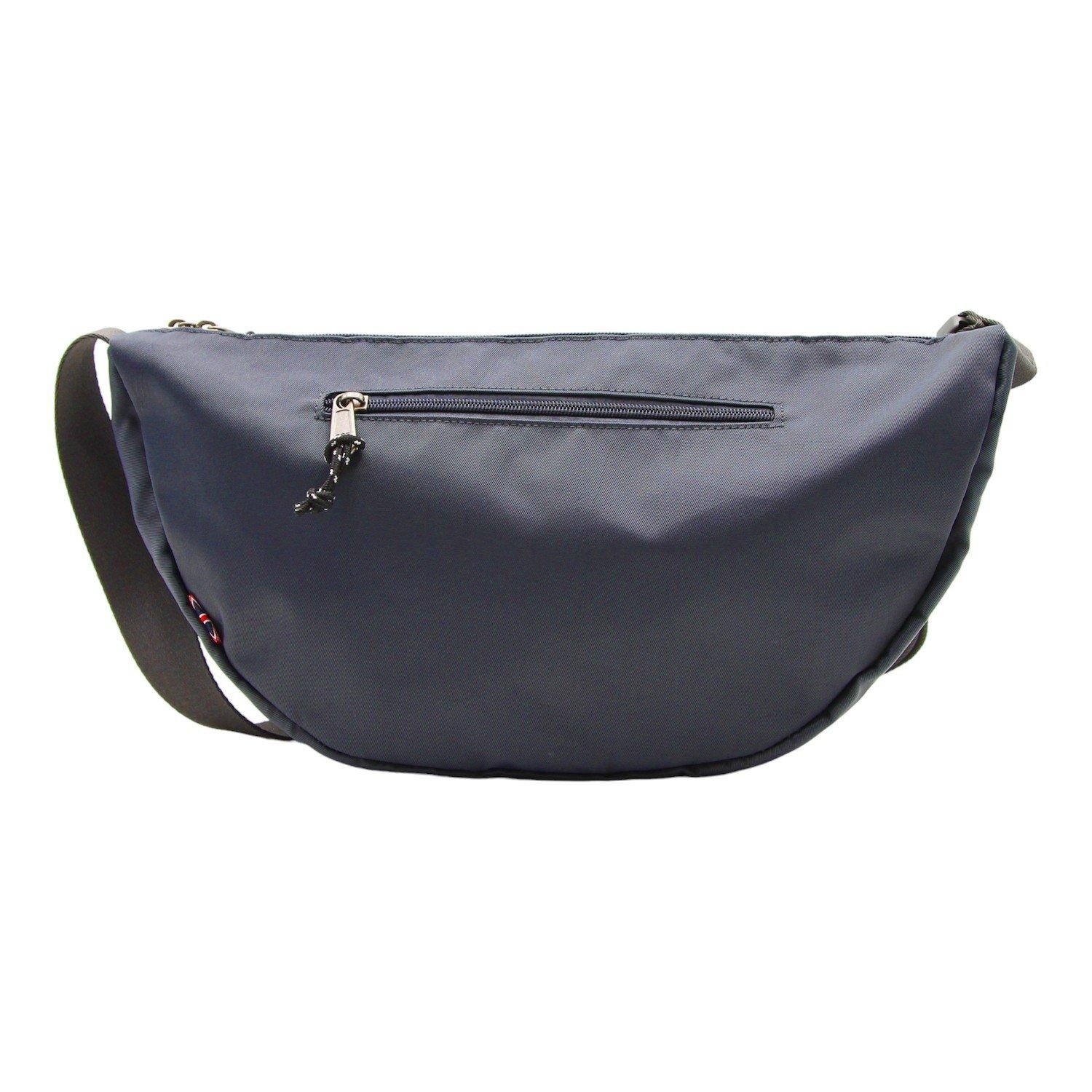 Современная сумка через плечо из водостойкого нейлона. С одним основным отделением на молнии и множеством внутренних и внешних карманов.