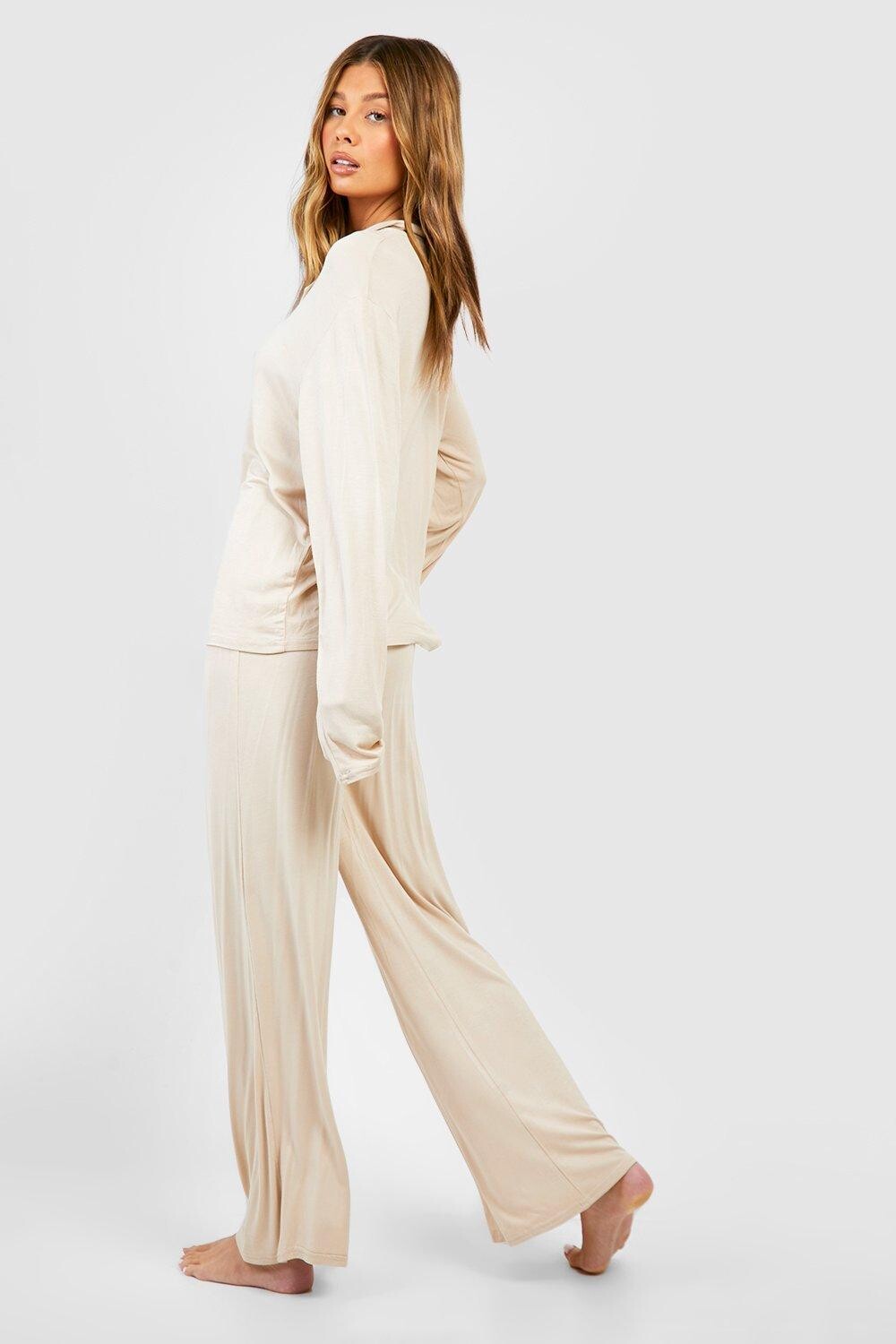 Широкие пижамные брюки из джерси boohoo, бежевый
