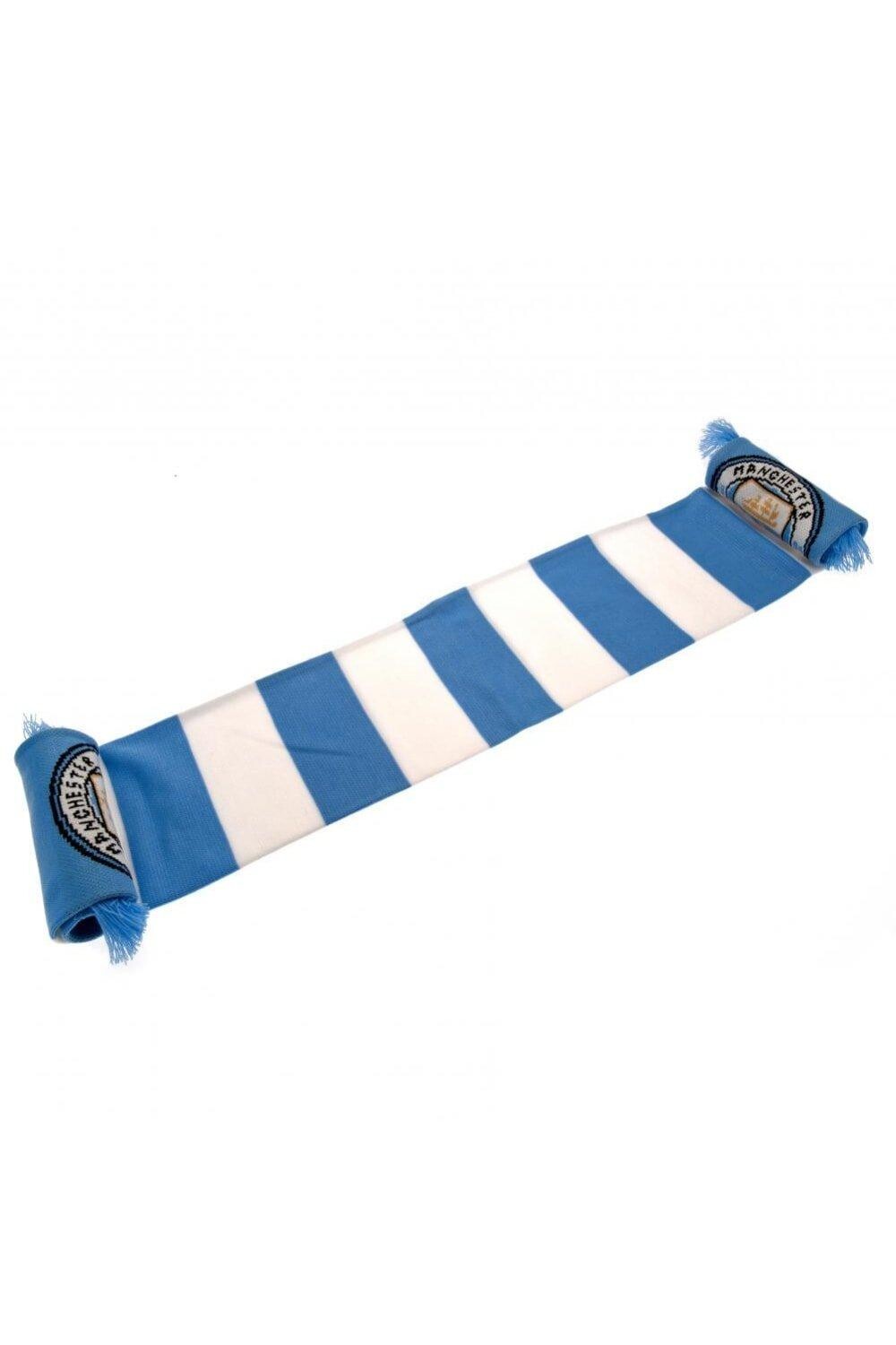 Жаккардовый вязаный шарф Manchester City FC. 100% акрил. Размер (приблизительно): 132см х 19см. Официальный лицензионный продукт.