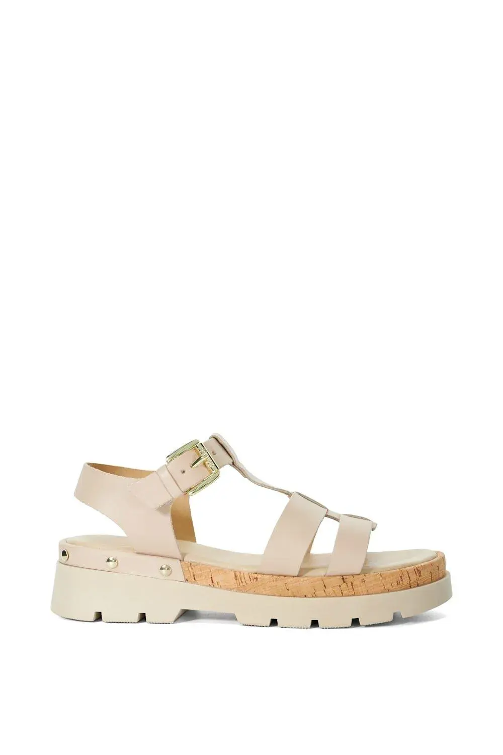 Эти сандалии-гладиаторы с рифленой подошвой, изготовленные из высококачественной кожи, созданы для комфорта в течение всего дня. Регулируемый ремешок на щиколотке и пробковый каблук с пробковой вставкой придают модели современный вид.