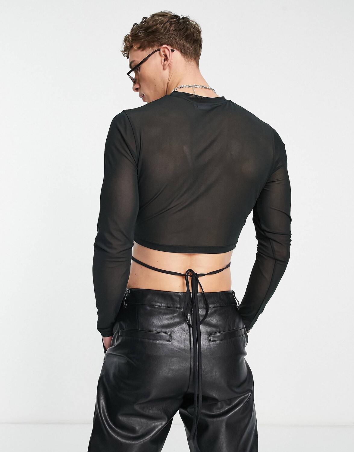 Черная укороченная футболка скинни с длинными рукавами и завязками ASOS DESIGN 4 396₽