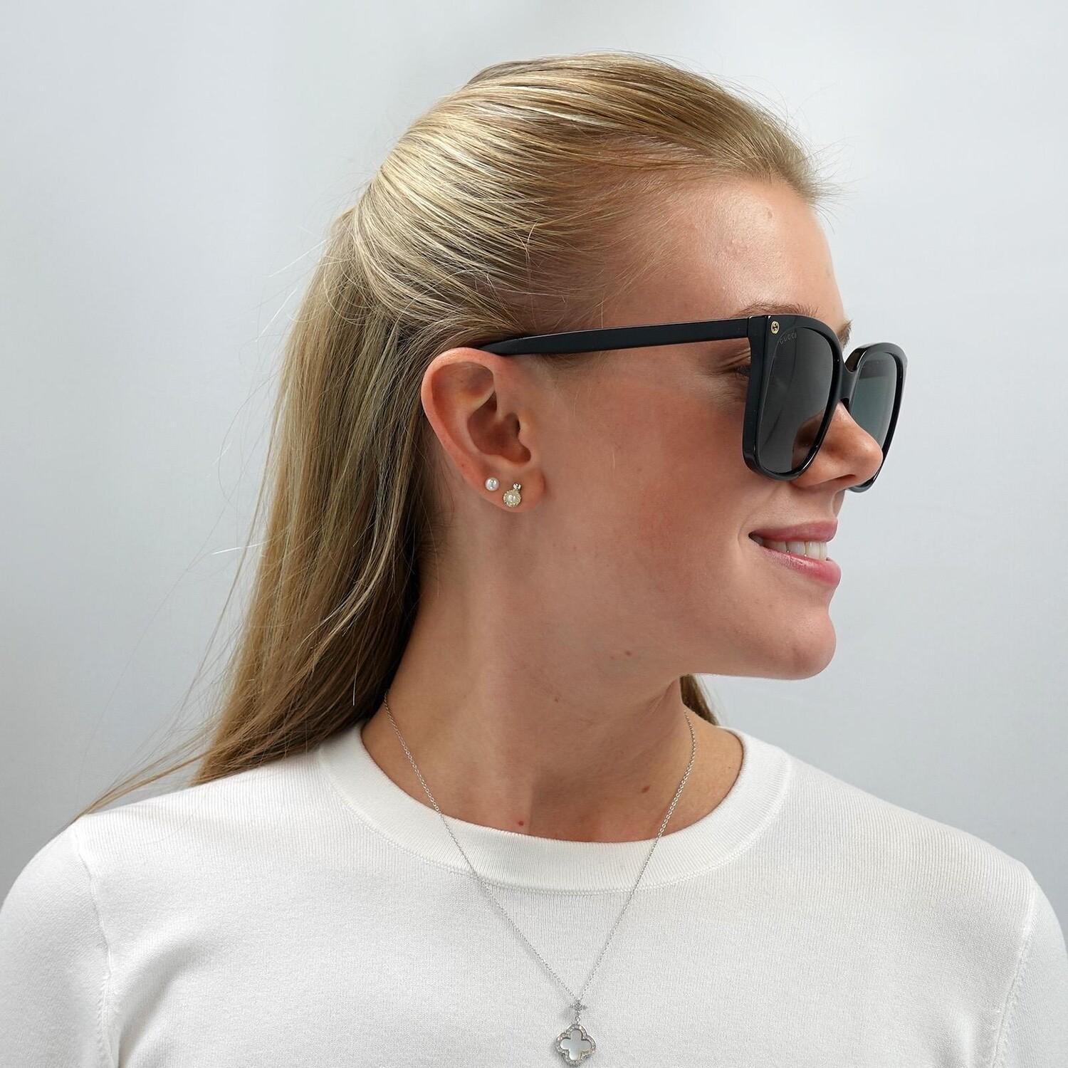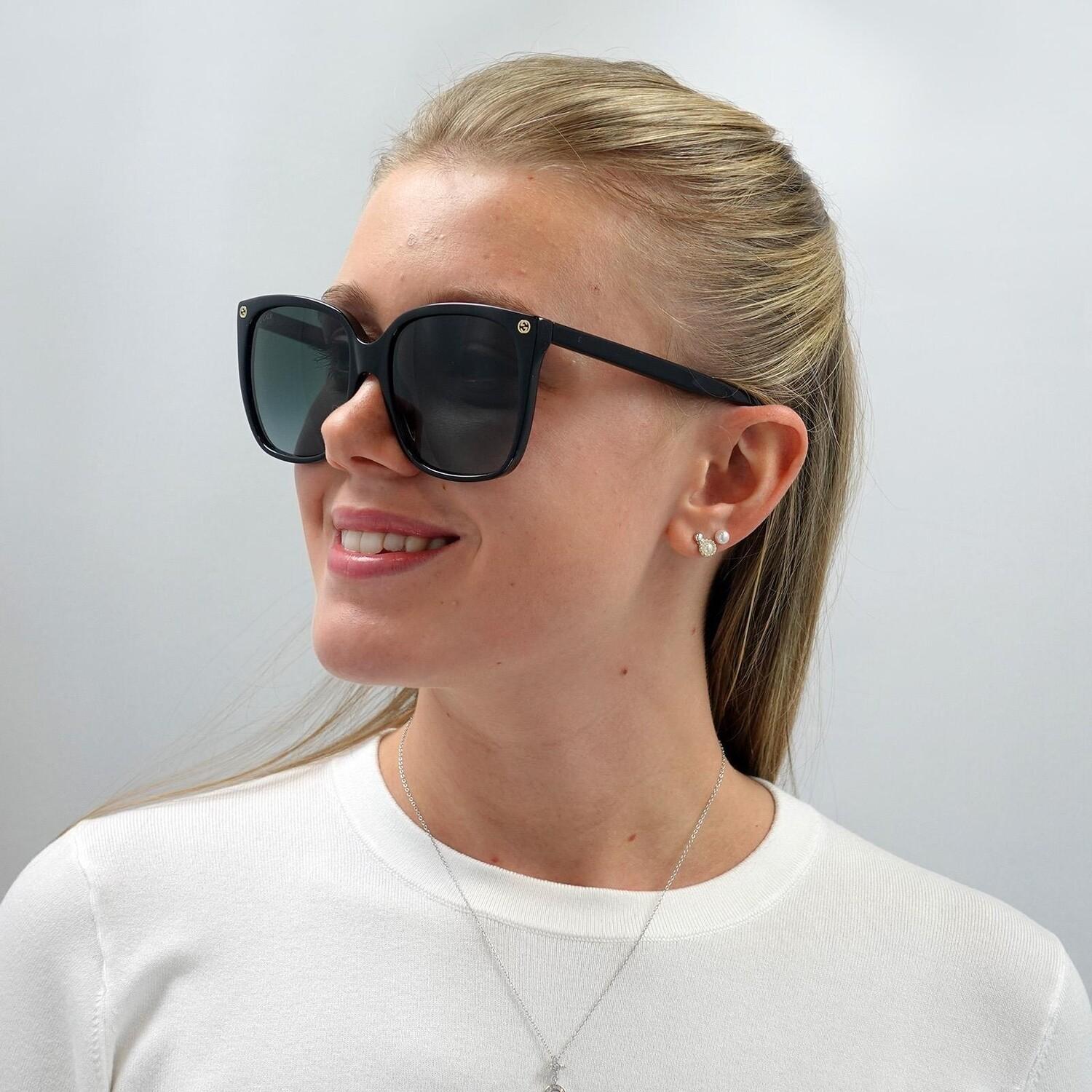GG0022S 001 Black Grey Gradient имеют простую квадратную форму со стильными логотипами GG на передних дужках и изображением пчелы на кончике заушников.