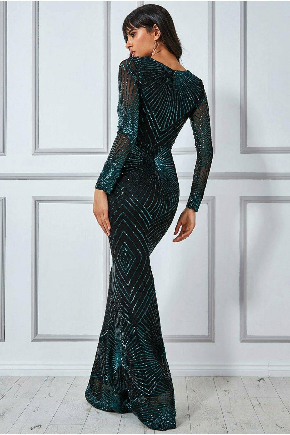 Оставьте немного блеска, куда бы вы ни пошли, в этом эффектном платье макси с пайетками звезд от Goddiva. Этот уникальный вариант простого платья макси впечатляет. Расшитые по всей поверхности блестки, образующие эффект звездообразования, придают этому длинному платью художественный вид. Кокетливый глубокий V-образный вырез, классические длинные прозрачные рукава и изысканный край «рыбий хвост» придают ему дополнительную элегантность. Это вневременное платье макси — идеальный вариант для любого случая в любое время года. Будьте готовы ко всем событиям в вашей жизни, будь то свадьба, вечеринка, официальное мероприятие или даже выпускной, это изделие так же изящно, как и звучит.
