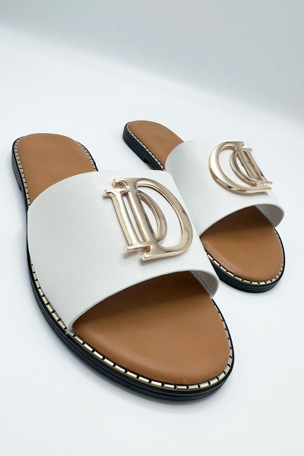 Эти шлепанцы придают новое определение повседневному шику благодаря изысканному дизайну и вниманию к деталям. Изысканная брошь с буквой D на ремешке придает индивидуальность любому ансамблю. Независимо от того, отдыхаете ли вы у бассейна или выходите на прогулку, эти ползунки легко придадут вашему образу сдержанный гламур. Высота каблука - 1 см/0,3 дюйма