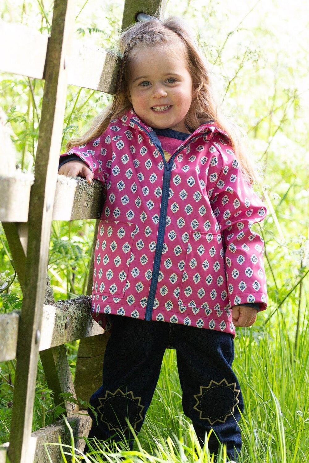 Это замечательное пальто с молнией создано для того, чтобы вы могли брызгаться сколько угодно! Изготовленная из полностью водонепроницаемой и ветрозащитной оболочки с мягкой подкладкой из джерси из органического хлопка, она одновременно практична и очень удобна. В компании Kite продумали множество функциональных особенностей, которые действительно делают его предпочтительным плащом. Модель выполнена с красивым лепестково-розовым флеровым принтом и контрастной темно-синей подкладкой.
